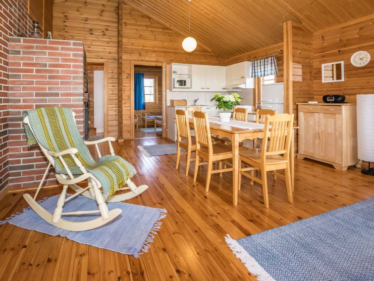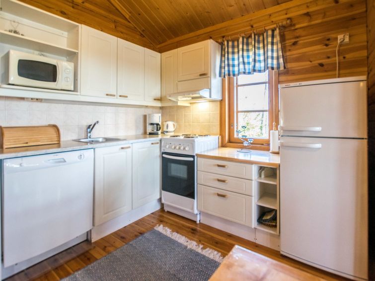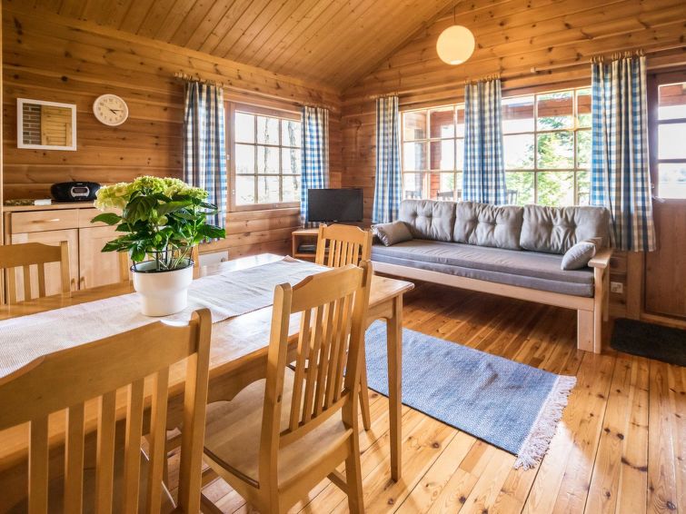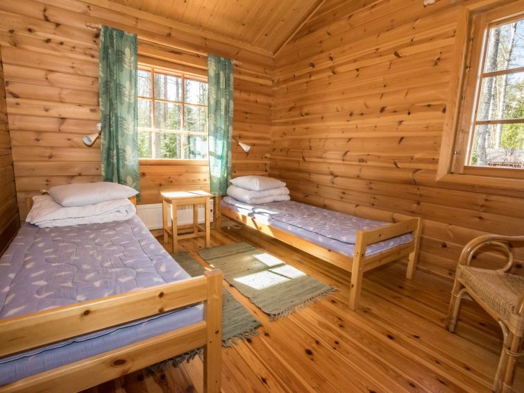 95 km northwest of Helsinki, L.Halkjärvi 30 m, (length 1.5 km, width 1 km), shallow, hard clay bottom, own boat. Log cottage 2005, living room/ kitchen convertible sofa, 2 bedrooms 2 beds in each, sauna, washroom, dressing room, open porch. Peaceful place, maintained ski trails 10 km away from cottage.