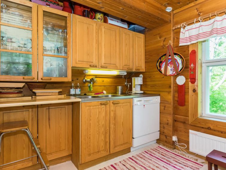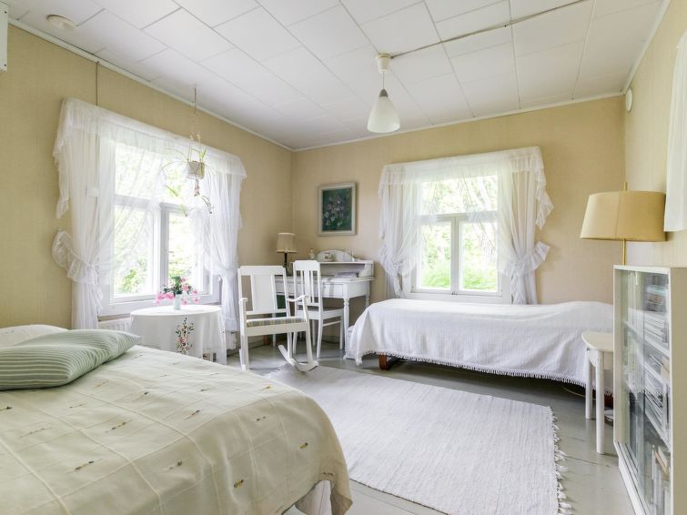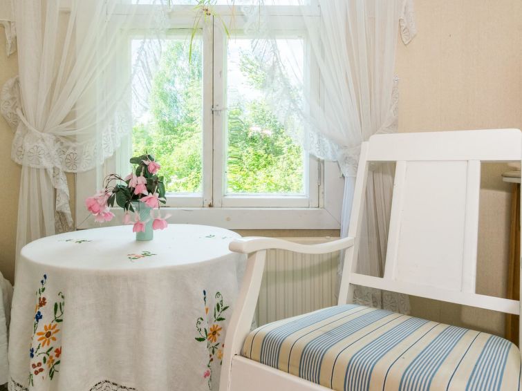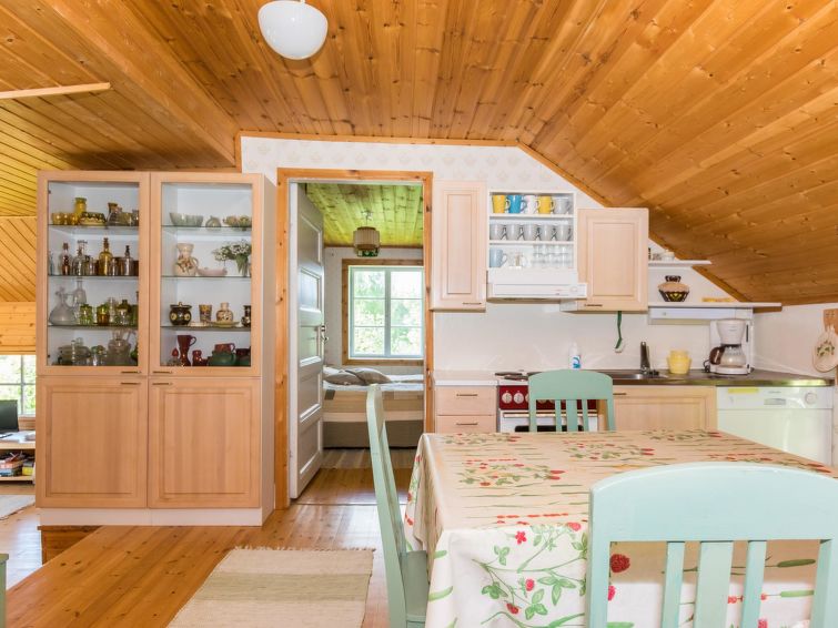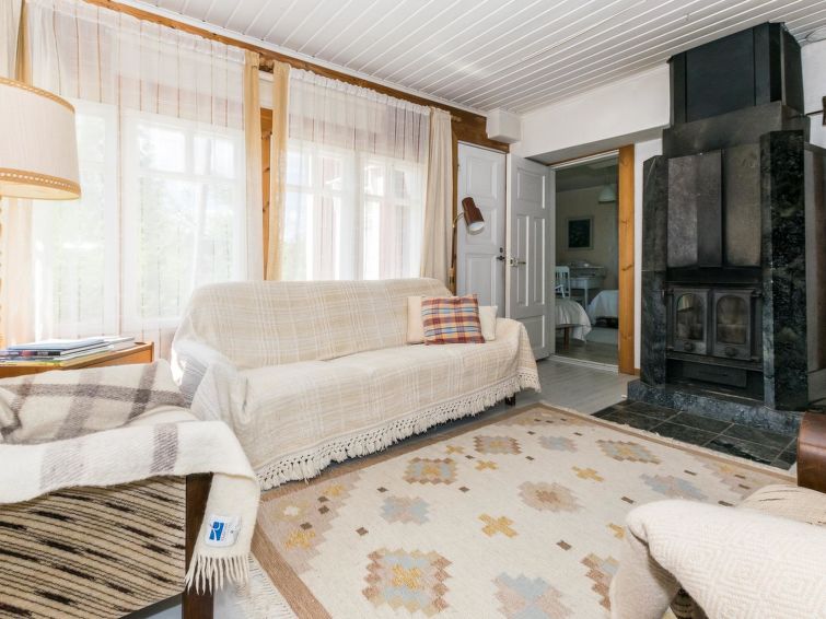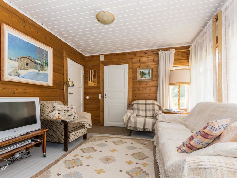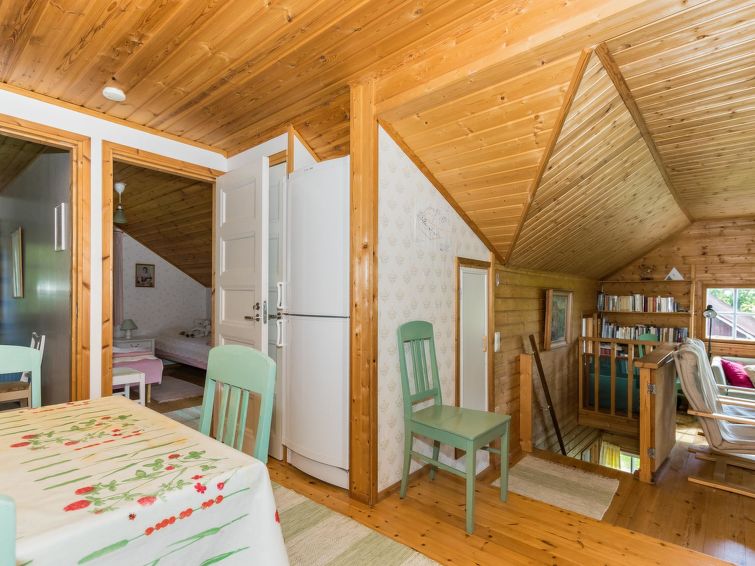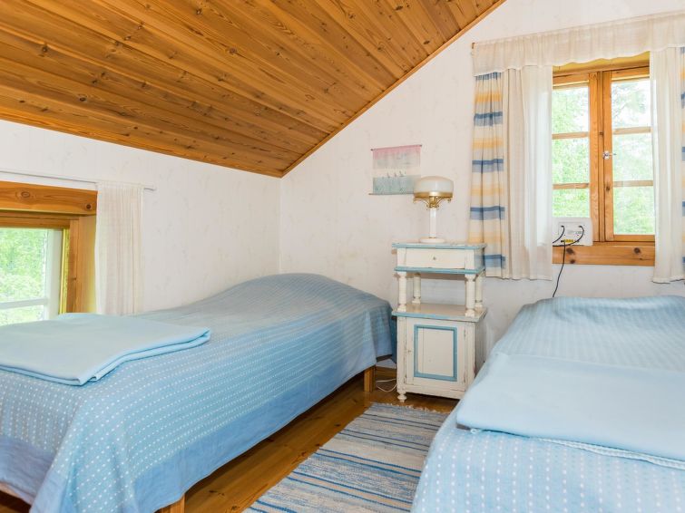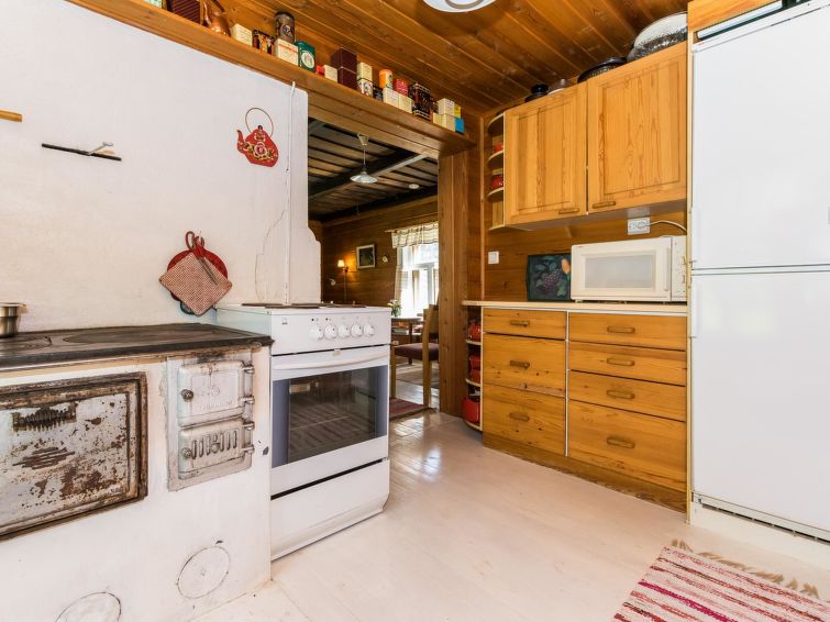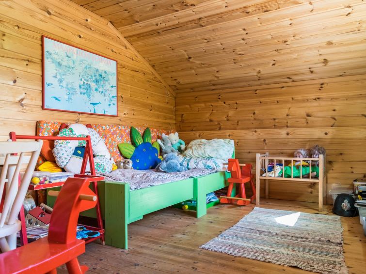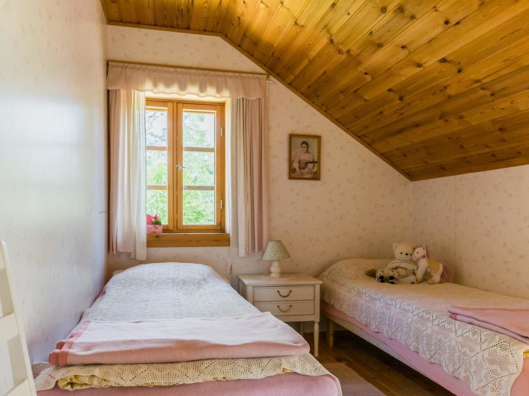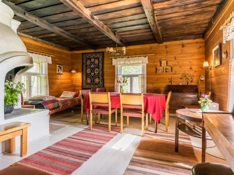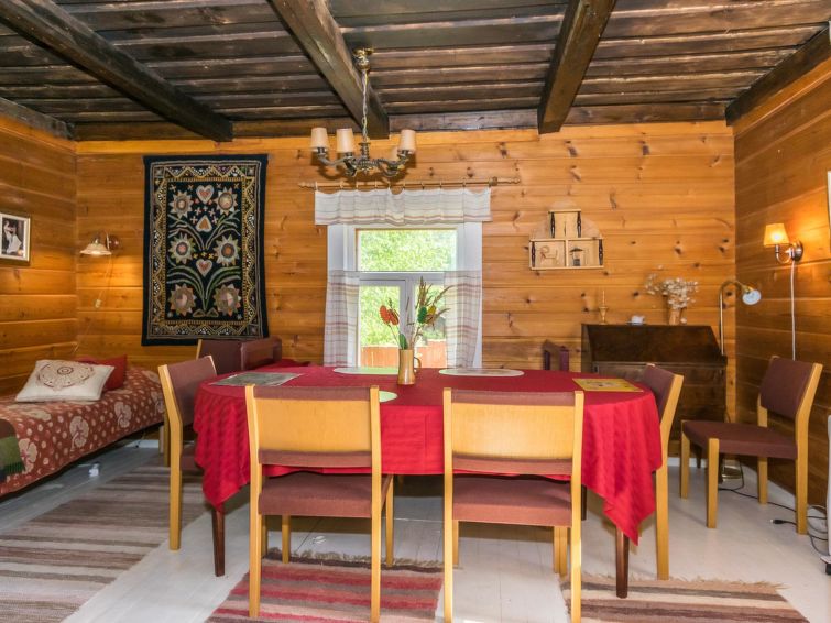 Log building 1901, renovated 1995, living room/kitchen 2 extra beds, bedroom 2 beds. Upstairs (steep stairs) bedroom with 2 beds, 2 small bedrooms (partly low room height) with 2 beds each, living room, shower is available downstairs and upstairs.