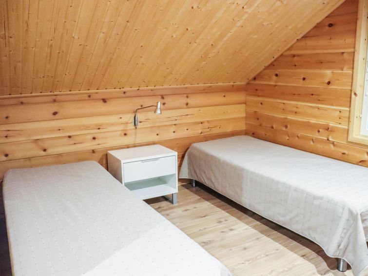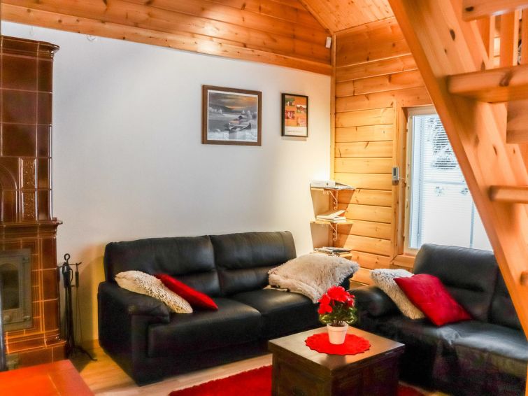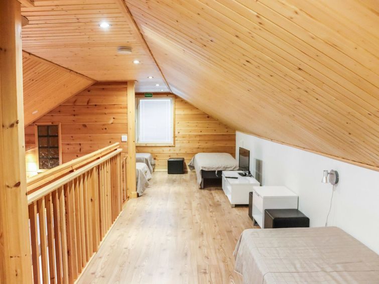 Living room and kitchenette, downstairs 2 bedrooms with double-beds. Sauna, 2 toilets. There are 4 beds on the upstairs. Wifi internet. Firewood includes in price.