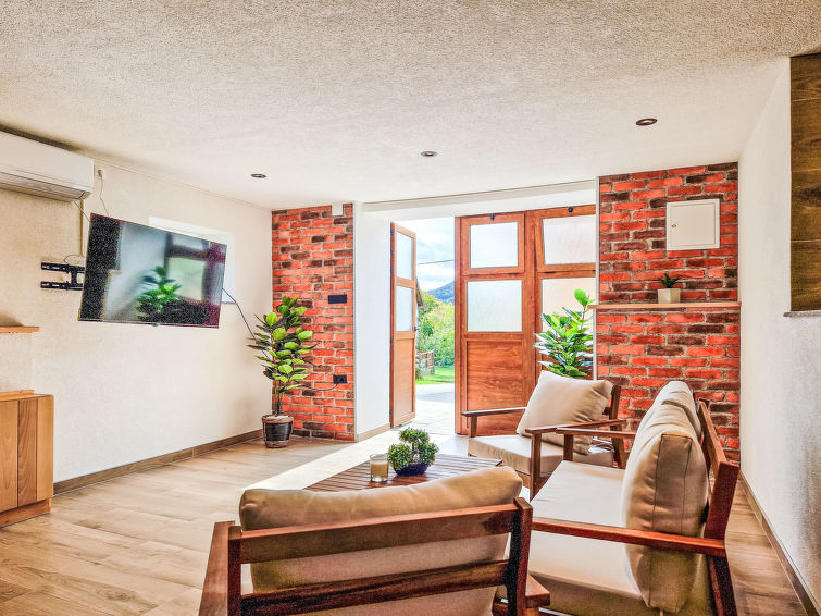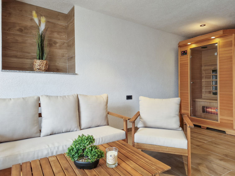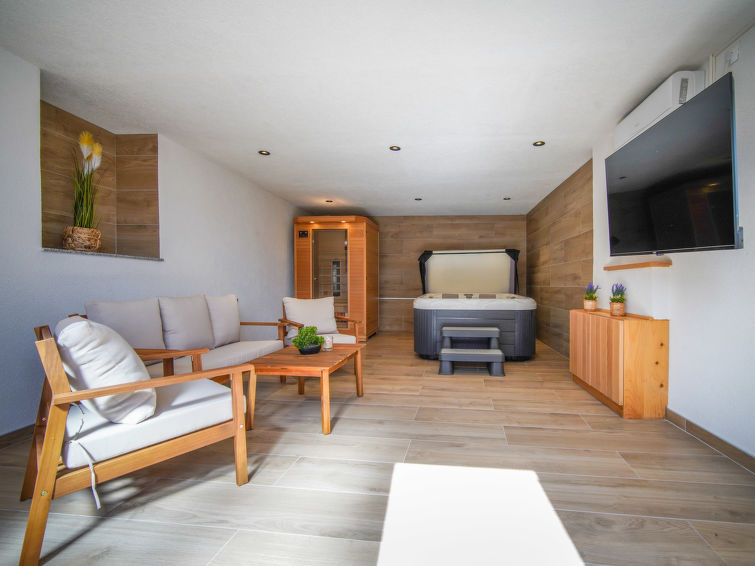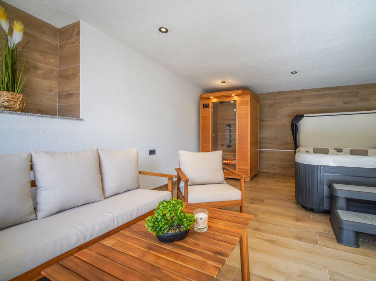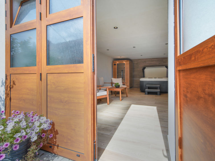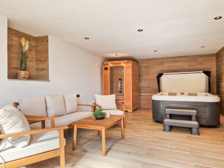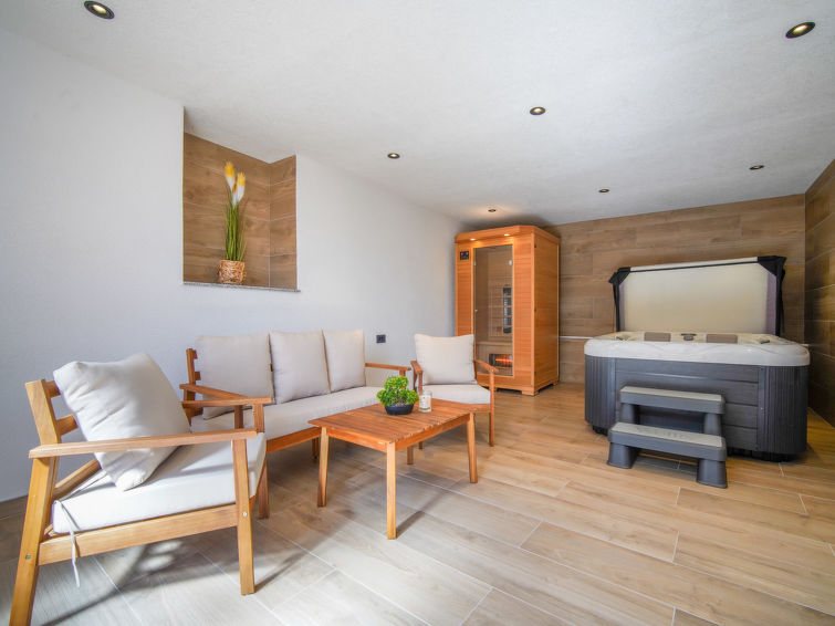 3 rom hytte 80 m2 på 2 etasjer, beliggenhet mot sør. Træ møblement møbler: stue/spisestue 35 m2 med, 1 sovesoffa (140 cm, lengde 200 cm), satelit-TV (flatskjerms TV), vedovn. Utgang til balkongen. Åpent kjøkken (stekeovn, oppvaskmaskin, 4 keramiske kokeplater, elektrisk kaffemaskin). Dusj/WC. Toppetasje: (vindeltrapp), 1 rom med skråtak Lav dørhøyde 120 cm 255 cm med, 1 dobbeltseng (140 cm, lengde 200 cm). Utgang til balkongen. 1 rom med skråtak Lav dørhøyde 120 cm 255 cm med, 1 dobbeltseng (180 cm, lengde 200 cm). Utgang til balkongen. Sep. WC. Vedoppvarming. Balkong 6 m2, 2 balkonger 4 m2, terrasse 10 m2, dekt. Terrassemøbler. Utsikt av landskapet. Fasiliteter: ved (gratis). Internett (trådløs LAN [WLAN], gratis). Kjæledyr / hund tillatt 1 kjæledyr / hund tillatt.