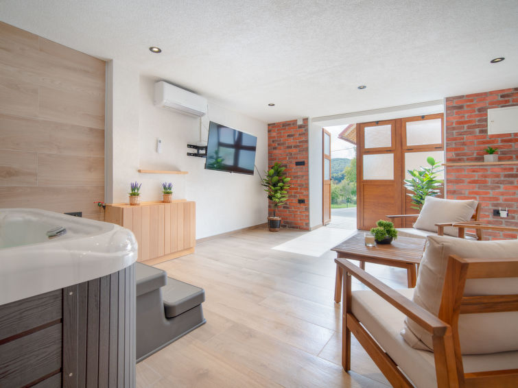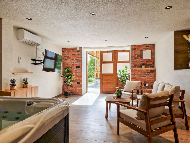 Hytte "Lana", med 2 etasjer. Ovenfor Senj, i det lille tettstedet Krivi Put 15 km fra sentrum av Senj, i en roligt, solrikt posisjon, 15 km fra sjøen, i det grønne. Fellesbruk: tomt 5'000 m2 med plen 2'000 m2, trær, 1 badebasseng firkantet (6 x 4 m, 27 m2, dybde 120 cm dyp, Sesongåpent: 01.Jun. - 30.Sep.) med overtrekk. Utendørs dusj, tennis, flombelyst, hagemøbler, grill. I huset: internetilkobbling, biljard, vaskemaskin. Parkering ved hbrukt på tomten. Butikk 15 km, restaurant 8 km, stenstrand 15 km, betonglagt strand 15 km. Vennligst merk: objektnummer HR3420.701.1 ligger på samme tomt. Svømmebasseng med hydromassasje. Tilgjengelig på objektet: rom med biljard, bordfotball, dart og pinball til felles bruk.