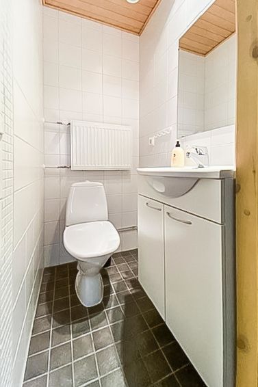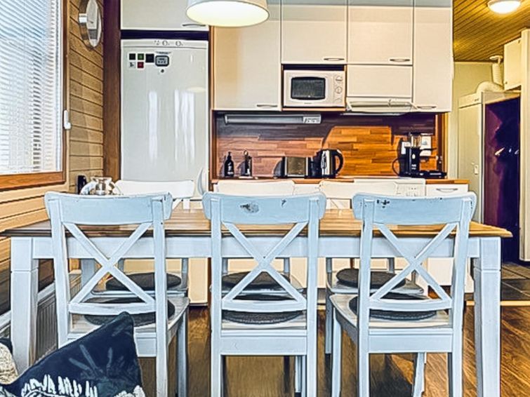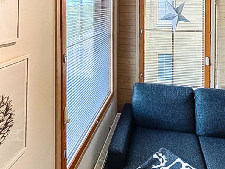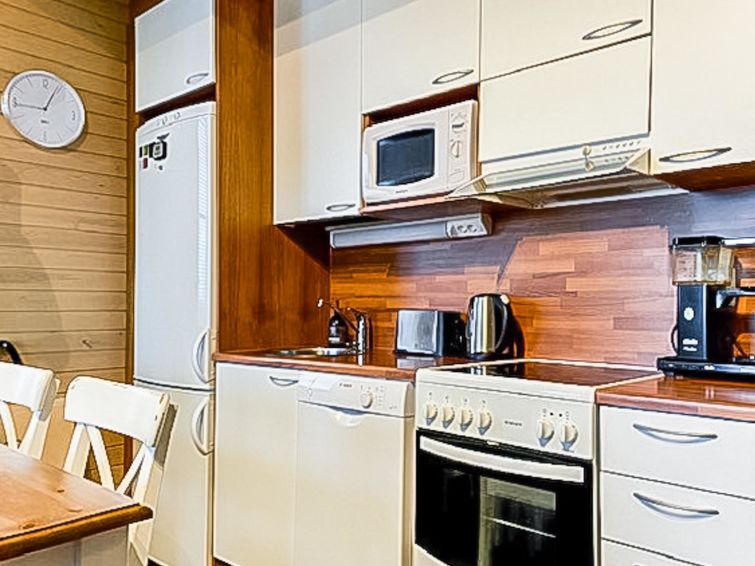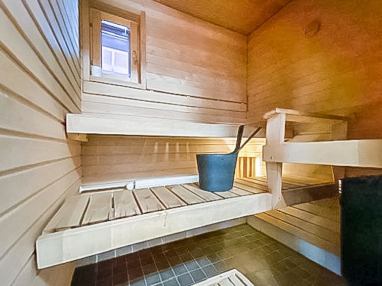 Apartment (built of wood/stone), built in 2007, situated house´s second floor. bedroom 1: double bed, bedroom 2: bunk bed with third drawer bed (all beds width 90 cm), living room: pull out corner sofa, combined kitchen/living room, electric sauna.