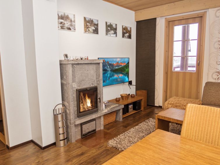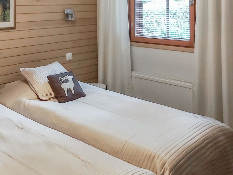 29km north of Kuusamo, Ruka village (Western Ruka) 450m. Apartment downstairs of 2-storey house (built of wood/stone), built in 2008, bedroom1: doublebed, bedroom2: 2 spring mattress beds. Living room, combined kitchen/living room, electric sauna. Other apartments in the area.