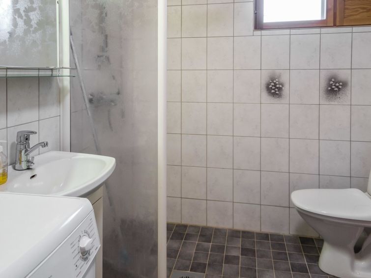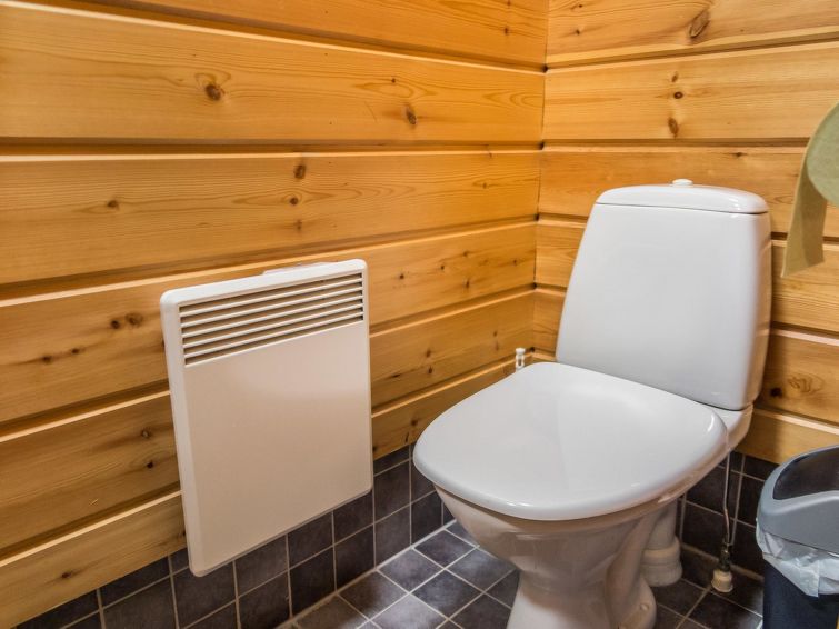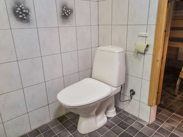 A semi-detached apartment in Äkäslompolo. Downstairs there is a kitchen-living room, a bedroom with two single beds, an electric sauna, a bathroom with a toilet and a separate toilet. Upstairs there are two bedrooms, each with two beds. A cozy semi-detached apartment well located near the center of Äkäslompolo.
