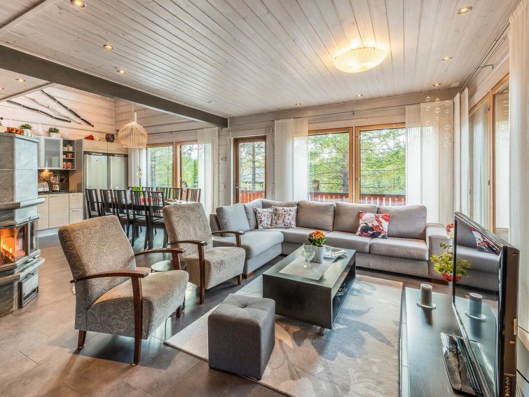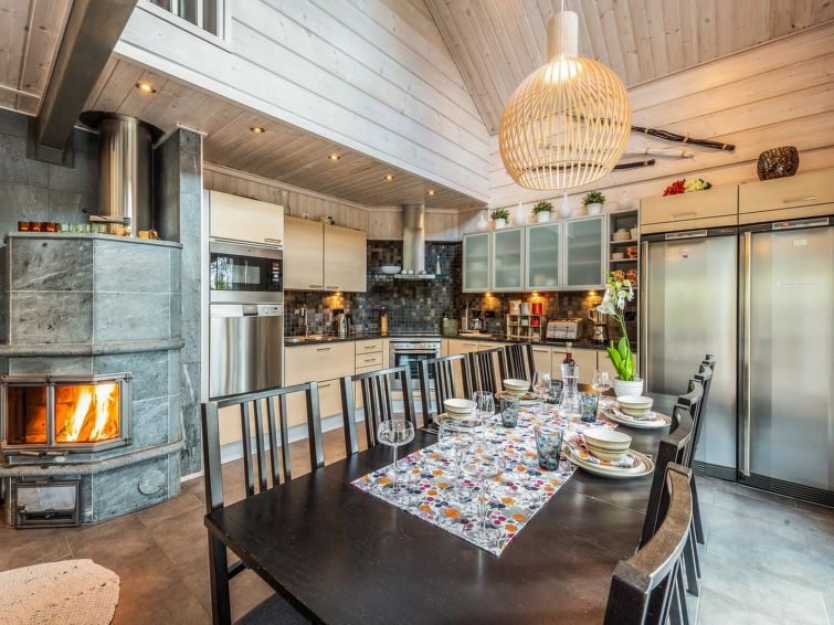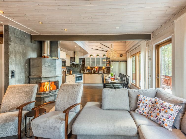 One ski pass during the winter season included in the price. Beautifully decorated and spacious log cabin in a peaceful area in the east side of Ruka. Spacious cottage also for bigger group of for example 2 families. The destination is well suited as a venue for summer parties, for example. However, please ask permission for parties and/or for possible exceeding for number of persons beforehand from Lomarengas, thank You. Good quality cookware and set of dishes. Two hot water containers (totally 600 l) ensure that there are enough of hot water for several persons.