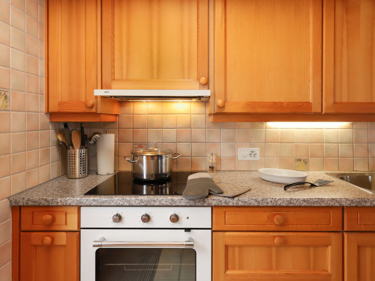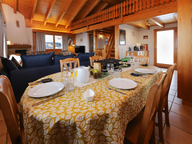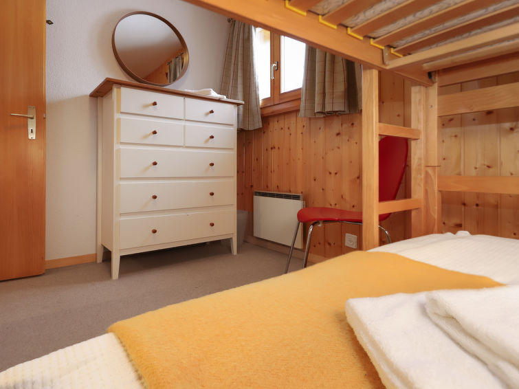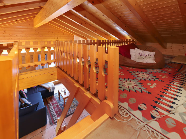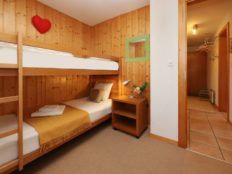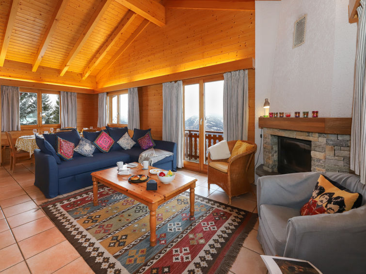 "Lara", 4 rom hytte 94 m2 på 2 etasjer. Praktiskt og vakkert møbler: stue/spisestue med, åpen peis og kabel-TV. Utgang til balkongen, beliggenhet mot nord. Åpent kjøkken (stekeovn, oppvaskmaskin, brødrister, vannkoker, mikrobølgeovn, elektrisk kaffemaskin, Internet(Nespresso), ekstra, raclettegrill (ost)). Dusj/WC. El-oppvarming. I underetasje: 1 rom med 2 senger (90 cm lengde 200 cm). 1 rom med, 1 dobbeltseng (160 cm, lengde 200 cm). 1 rom med, 1 x 2 køysenger (90 cm, lengde 200 cm). Bad/WC. Balkong, beliggenhet mot nord, terrasse, beliggenhet mot sør. Vakker utsikt av dalen. Fasiliteter: vaskemaskin. Internett (trådløs LAN [WLAN], gratis). Parkeringsplass (1 Bil). Vennligst merk: røykfri bolig.