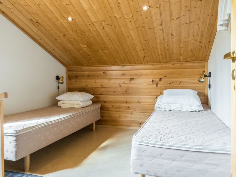 On the ground floor, living room/kitchen, bedroom with double bed, sauna, washroom, separate WC and covered terrace.