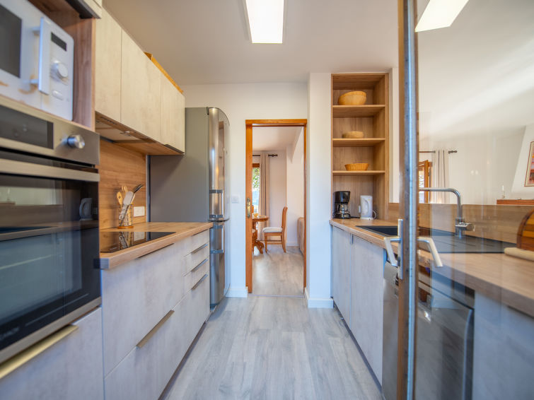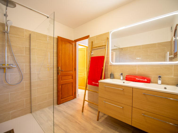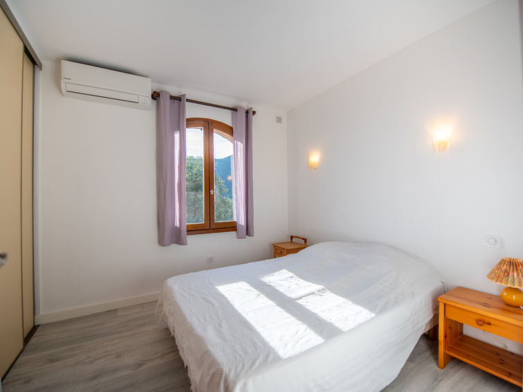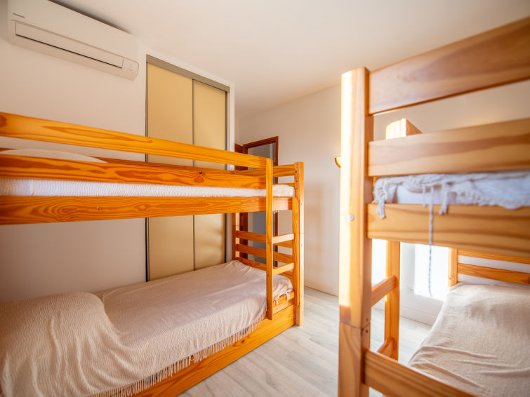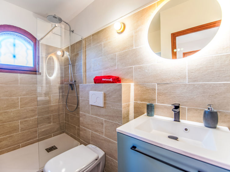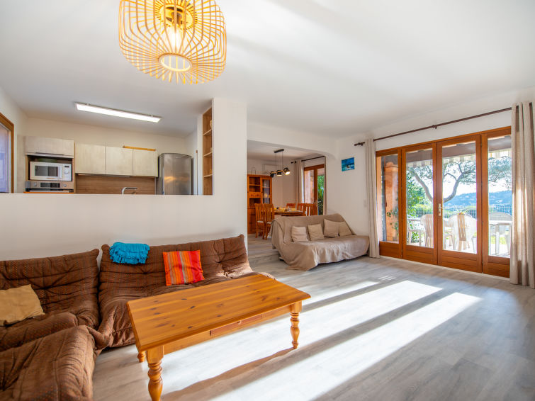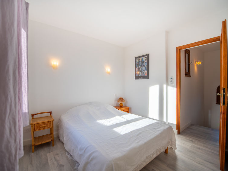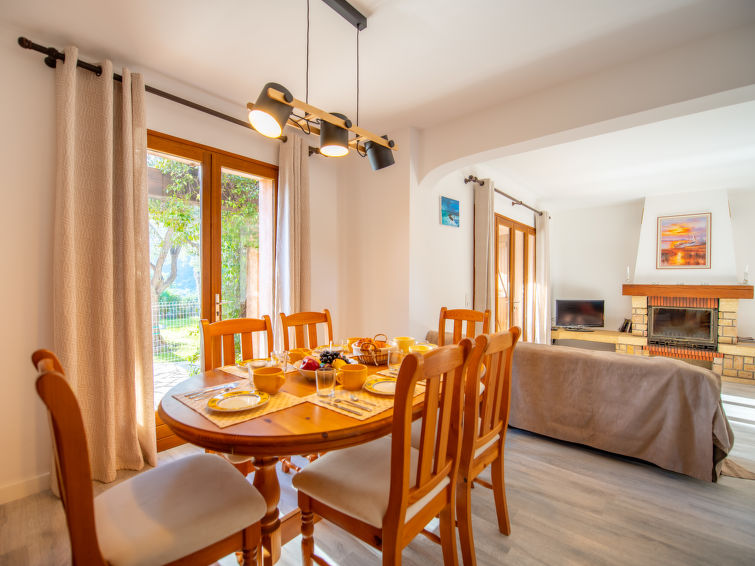 4 rom rekkehus 110 m2 på 2 etasjer, beliggenhet mot sør. Praktiskt og vakkert møbler: stue/spisestue med, TV (flatskjerms TV). Utgang til terrassen, til badebassenget. 1 rom med, 1 dobbeltseng (160 cm, lengde 200 cm). Kjøkken (4 kokeplater, stekeovn, oppvaskmaskin, brødrister, vannkoker, mikrobølgeovn, frys, elektrisk kaffemaskin). Bad, sep. WC. øverste etasje: 1 rom med, 1 dobbeltseng (140 cm, lengde 190 cm). 1 rom med, 2 x 2 køysenger (80 cm, lengde 190 cm). Dusj/WC. El-oppvarming. Terrasse 20 m2, dekt, beliggenhet mot sør. Terrassemøbler, liggestoler (4). Fasiliteter: vaskemaskin, tørketrommel, strykejern. Internett (trådløs LAN [WLAN], ekstra). Parkeringsplass (inngjerdet). Vennligst merk: max kjæledyr / hund tillatt 1 kjæledyr / hund tillatt. Røykvarsler. The barbecue is in the rear courtyard of the house, by the kitchen. Sea view from the 1st floor of the villa.