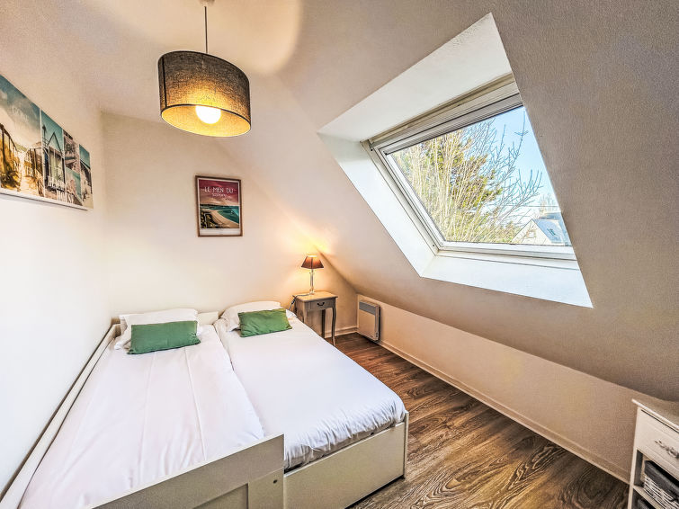 Enmannsbolig "Le Clos St Colomban", med 2 etasjer. I det lille tettstedet Clos St Colomban, i utkanten, 1.2 km fra sentrum av Carnac Plage, 1.1 km fra sjøen, 1.1 km fra stranden. Privat: velholdt hage m2 250 ha, parkering på tomten. Butikk 1.4 km, supermarked 650 m, restaurant 1.4 km, bakeri 900 m.minutters gange til sentrum 15, togstasjon "Auray" 12 km, sandstrand "Plage de Légenèse & St Colomban" 1.2 km, dykkesenter 6 km, innendørs pool 1.3 km, termalbad "Thalassothérapie Thalazur Carnac" 1.3 km. Golfbane(18 hull) 16 km, surfeskole 6 km, seileskole 1.2 km, tennis 900 m. Attraksjoner i nærheten: Les alignements de Carnac 1.2 km, La Trinité sur Mer 6 km, Quiberon et la presqu'ile 15 km, Belle ile en Mer, Houat, Hoedic, Vannes 35 km, Lorient 65 km. Turstier Le Golfe du Morbihan.
