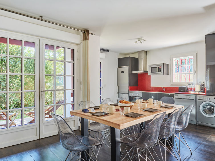 Liten resort "Le Domaine de Lana". 14 hus i residensen. I utkanten Urrugne, 3 km fra sentrum av St. Jean-de-Luz, i et boligområde, 2.5 km fra sjøen. Fellesbruk: 1 badebasseng oppvarmt, inngjerdet (14 x 5 m, Sesongåpent: 15.Apr. - 15.Okt.). I anlegget: resepsjon, sentralvarme. Parkering (begrenset antall plasser). Butikk 1 km, togstasjon "Hendaye" 10 km, sandstrand 2.5 km. Attraksjoner i nærheten: Biarritz 22 km. Vennligst merk: Bildet er et eksempel. Feriehuset kan variere i stue, planløsning, utstyr og møbler.