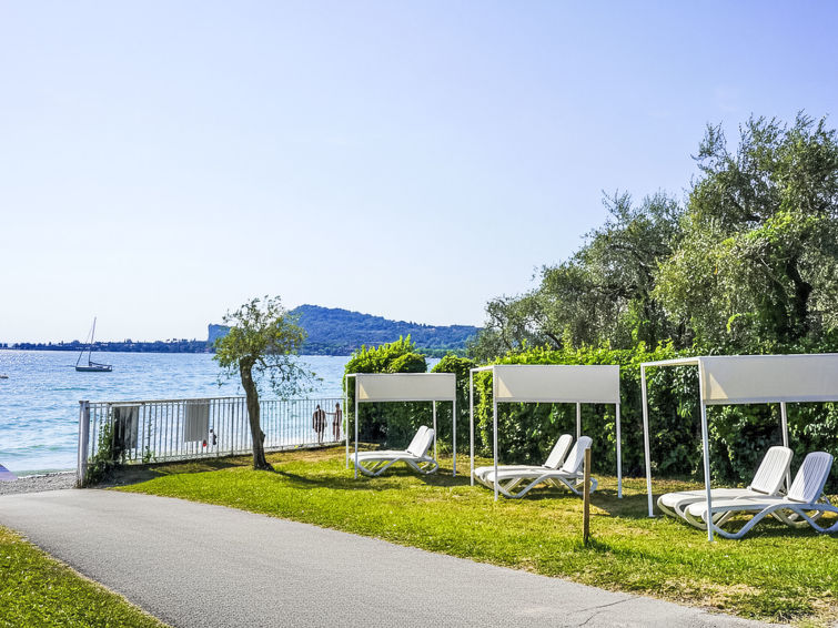 Stor, familievennlig resort "Sanghen". I området Pieve di Manerba 3.5 km fra sentrum av Manerba del Garda, ved en høyde, 250 m fra innsjø 250 m fra stranden, direkte tilgang til stranden. Fellesbruk: tomt 70'000 m2 (inngjerdet), trær, plen med solningsområde, 3 badebasseng (Sesongåpent: 01.Mai. - 30.Sep. og 01.Jul. - 31.Aug. bassengets åpningstider: 08:30-13:00 og 15:30-19:30). Barnebasseng, utendørs dusj, boblebad, tennis (1 x hard bane), lekeplass. I anlegget: resepsjon, restaurant, bar, trådløst LAN [WLAN], butikkpingmuligheter, vaskemaskin (ekstra), tørketrommel (for felles bruk ekstra). Rundstykkeservice, frokost og halvpensjon muligt (ekstra). Trapper til hbrukt. Parkering (begrenset antall plasser) på tomten. Bussholdeplass 50 m, småstenstrand 250 m. Golfbane(27 hull) 6 km. Attraksjoner i nærheten: Salò 9 km, Desenzano del Garda 15 km, Brescia 38 km. Vennligst merk: underholdning under høysesongen. Velegnet for barnefamilier. Privat båtplass (ekstra) på forespørsel.