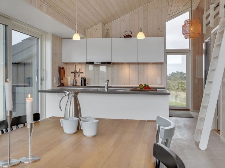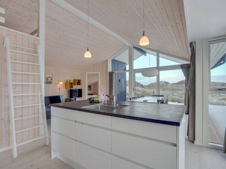 "Leevi" - 400m from the sea in Western Jutland", 3 rom hus 86 m2. Passer for 6 voksne. Stue med, TV og radio. 1 rom med, 1 dobbeltseng. 1 rom med, 1 dobbeltseng. 1 rom med 1 seng. Kjøkken (stekeovn, oppvaskmaskin, 4 keramiske kokeplater, frys). Dusj/WC. Fasiliteter: Internett (trådløs LAN [WLAN]). Vennligst merk: røykfri bolig.