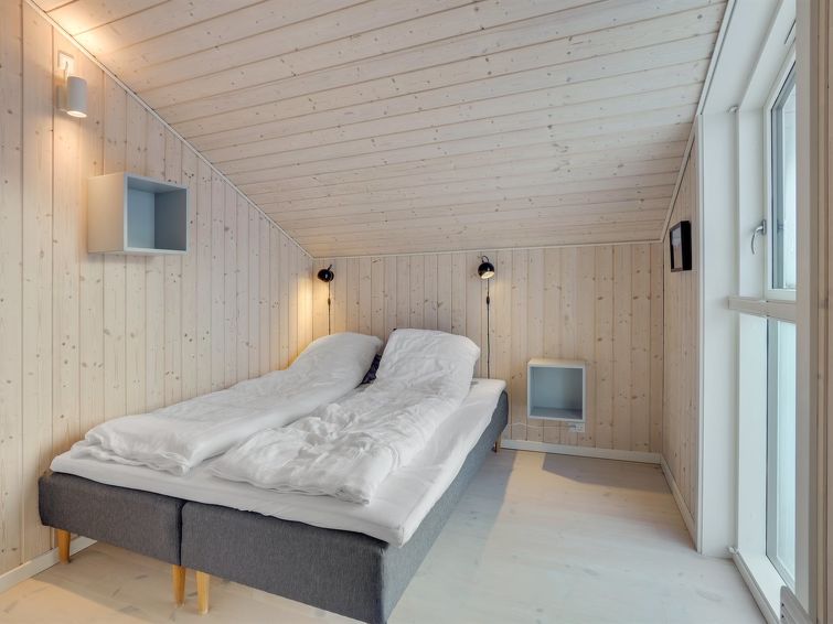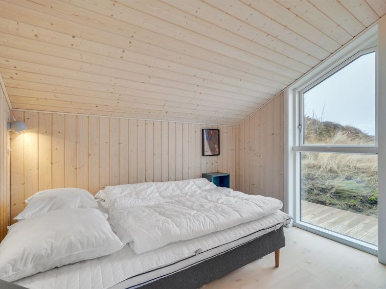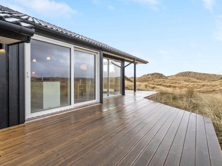 Oksbøl: Enmannsbolig, bygget i 2021. 400 m fra sjøen. Privat: uberørt tomt 2'700 m2. Utendørs dusj, grill. I huset: vaskemaskin, tørketrommel. Parkering ved hbrukt. Daglivarehandel 7 km. Eieren godtar ikke noen ungdomsgrupper.