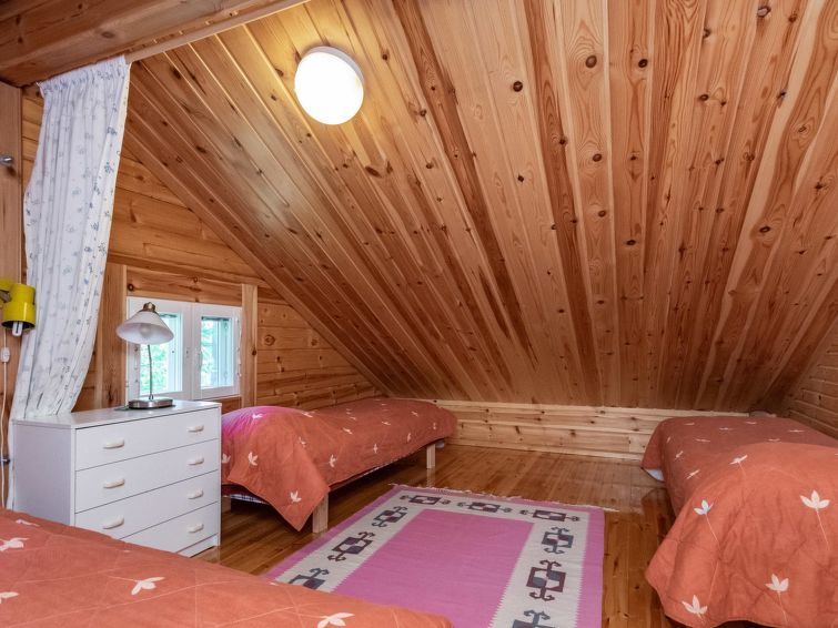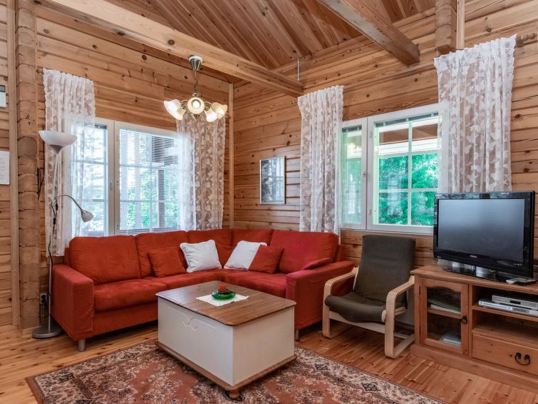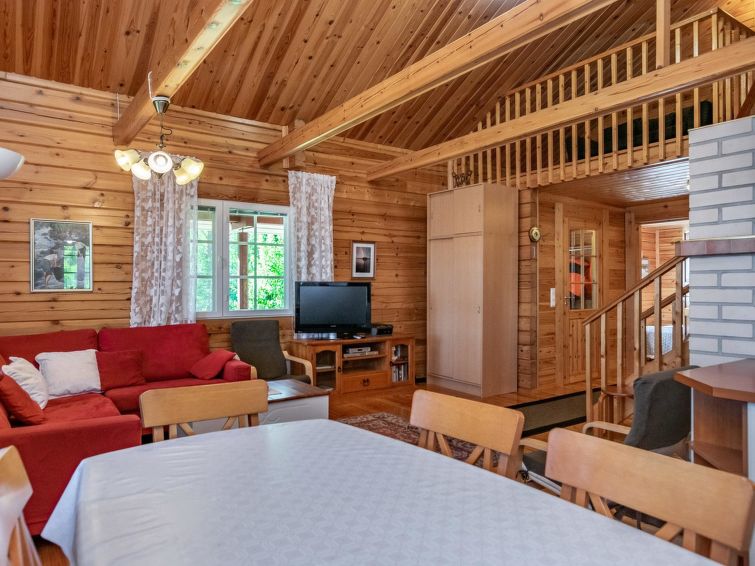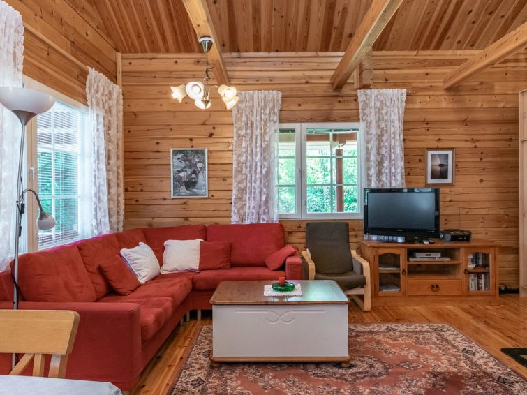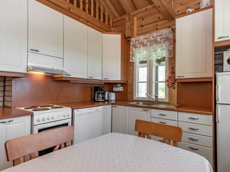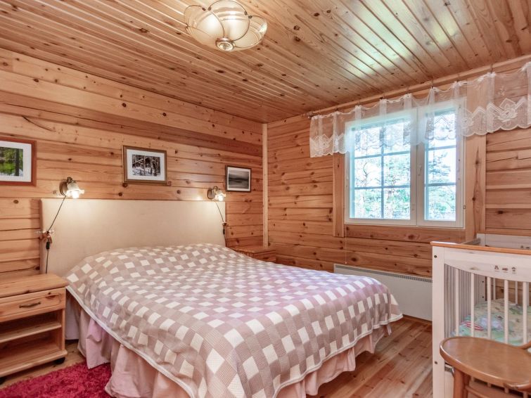 Log cottage 2006, living room/kitchen, bedroom 2 beds, bedroom double bed, bedroom on the loft 4 beds, sauna, washroom, dressing room, porch, toilet. Wi-Fi. Comfortable cottage on eastern border. Ylä-Tyrjäjärvi is a border lake and a border zone permit (free of charge) is required for rowing, in winter icefishing on it. When booking, customers must notify names and dates of birth of holidaymakers to Lomarengas or cottage owner well in advance.