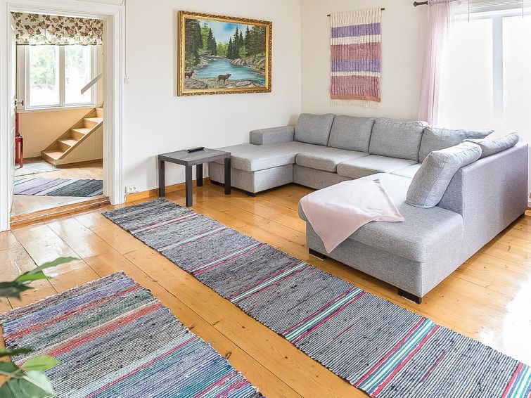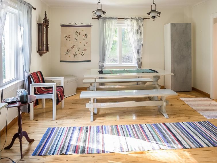 For small children, there is a travel cot, potty and high chair. These are available free of charge. Please ask in advance. Outdoors you can find trampoline, jungle gym and slide. The cabin is located in idyllic countryside in the middle of fields and forests. The large yard is suitable for families with children as well as adults looking for a peaceful holiday. The cabin is also ideal for teleworkers thanks to quiet location. There is also a dining group and gas grill in the yard. There are good terrains for picking berries and mushroom in the forests nearby, as well as terrain for jogging with dogs.
