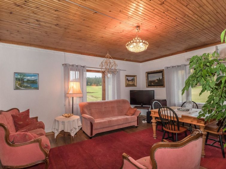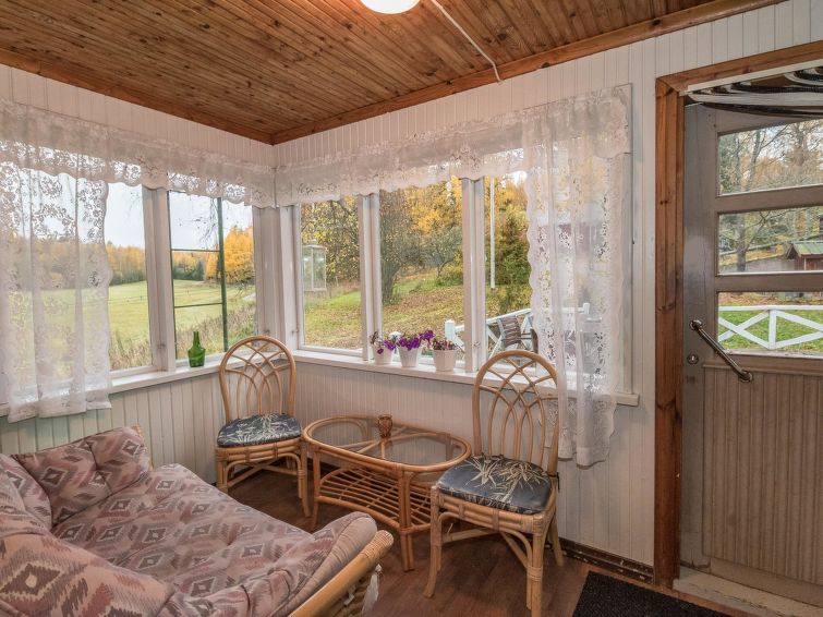 Sauna in separate yard building. Sauna has wooden stove, 2 showers and dressing room. Old country house from 1950s, renovated 2003. Suitable for several families with children. Large sunny yard, plot surrounded by fields. Yard buildings: cowhouse, wood shed, sauna. Road to a few other cottages passes through yard.