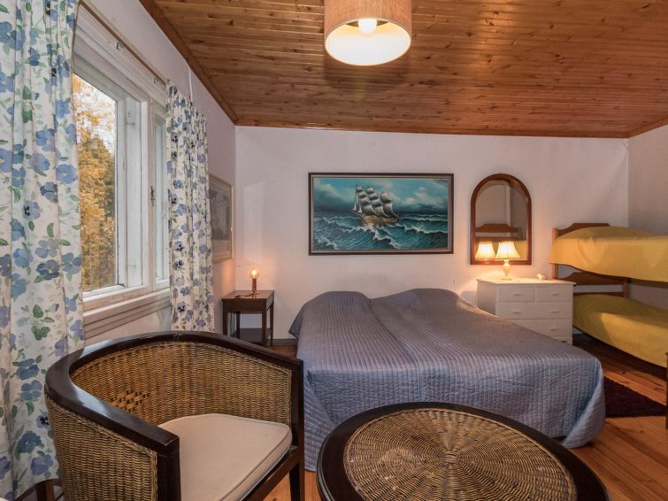 Wooden cottage 1952, renovated 2003, partly rebuilt 2008,kitchen, living room, dining room convertible sofa for 2 persons, bedroom 2 beds, 2 bedrooms upstairs, in one 1 bunk and 1 bed, in other 1 bunk and double bed, glazed porch.