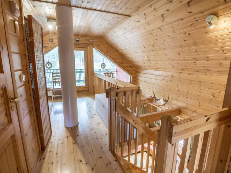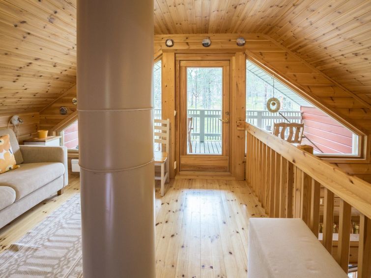 40km north of Kolari, 1,8km from lake Äkäslompolo, 3,3km from a beach. Timber cottage built in 2002. Kitchen-living room, three bedrooms, one with double bed and upstairs bedrooms with beds 120 cm x 200 cm, living room and upstairs lobby have retractable sofa bed, sauna(electric heated), bathroom and two separate wc:s. Terrace, Wifi, 2 x snow shoes. A Good quality timber gottage in Äkäslompolo village. Apartment is located in a quiet area. No pets allowed in the apartment. Final cleaning included in the price.