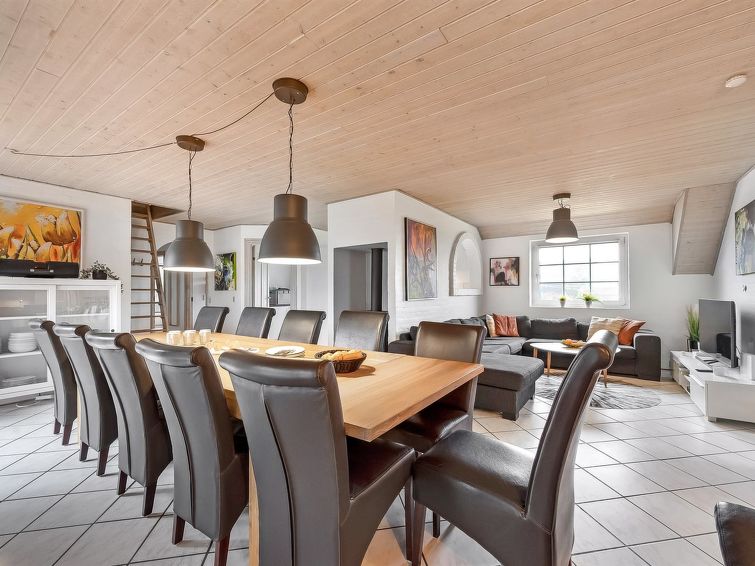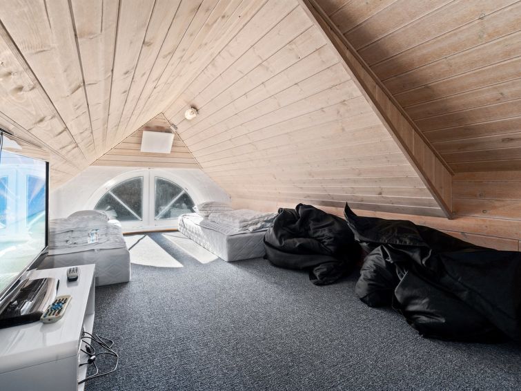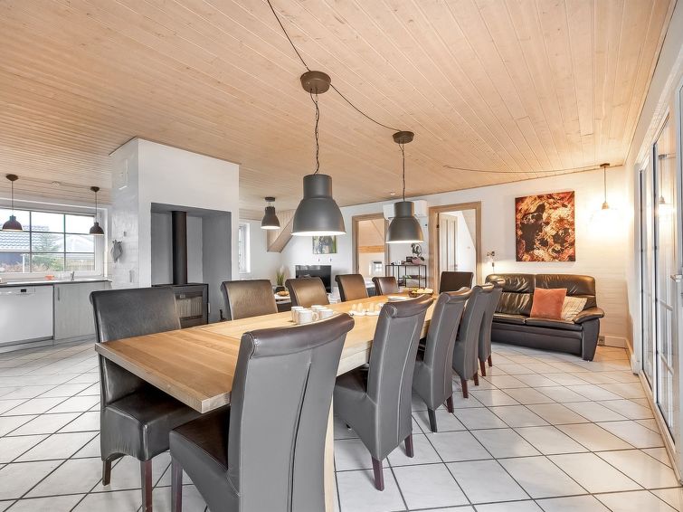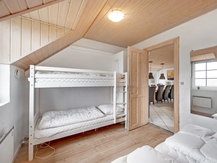 "Lemmikki" - 1.5km from the sea in Western Jutland", 5 rom hus 200 m2. Passer for 10 voksne + 5 barn. Stue med, TV og radio. 1 rom med, 1 dobbeltseng. 1 rom med, 1 dobbeltseng. 1 rom med, 1 x 2 køysenger, 1 dobbeltseng. 1 rom med 2 senger. Åpen galleri, 1 rom med, 1 x 2 køysenger, 4 sovemuligheter. Kjøkken (stekeovn, oppvaskmaskin, 4 keramiske kokeplater, mikrobølgeovn, frys). 2 dusjer/WC, boblebad. Fasiliteter: høy barnestol barneseng (ekstra). Internett (trådløs LAN [WLAN]). Vennligst merk: røykfri bolig. Max kjæledyr/små hunder tillatt 2 kjæledyr/små hunder tillatt.