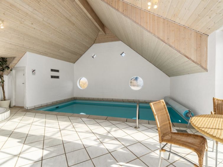 Enmannsbolig, bygget i 1994. 1.5 km fra sjøen. Privat: uberørt tomt 2'255 m2, innendørs pool. Terrasse (50 m2), lekeplass (rutsjebane, huske). I huset: badstu, fotballsbord, trikkpolinje, vaskemaskin, tørketrommel. Parkering ved hbrukt. Daglivarehandel 2.0 km. Golfbane 100 m. Eieren godtar ikke noen ungdomsgrupper.