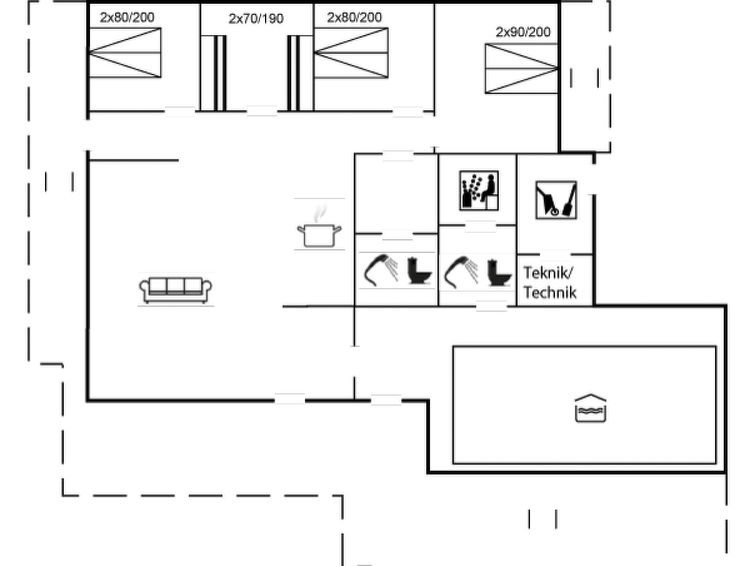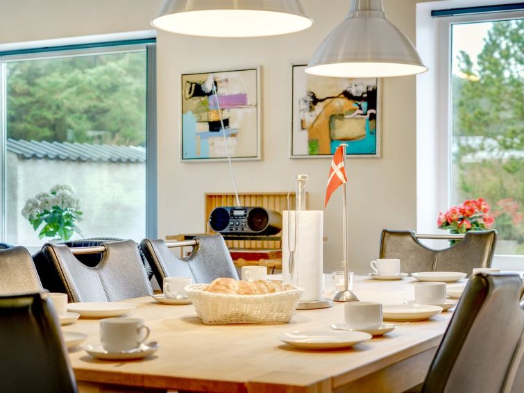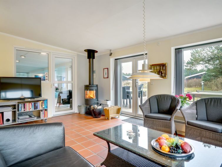 "Lenni" - 700m from the sea in NW Jutland", 4 rom hus 195 m2. Passer for 10 voksne + 2 barn. Stue med, TV, radio, CD-spiller, stereoanlegg og DVD. 1 rom med, 2 x 2 køysenger. 1 rom med, 1 dobbeltseng. 1 rom med, 1 dobbeltseng. 1 rom med, 1 dobbeltseng. Kjøkken (stekeovn, oppvaskmaskin, 4 keramiske kokeplater, mikrobølgeovn, frys). Dusj/WC. Fasiliteter: høy barnestol barneseng (ekstra). Internett (trådløs LAN [WLAN]). Vennligst merk: røykfri bolig.