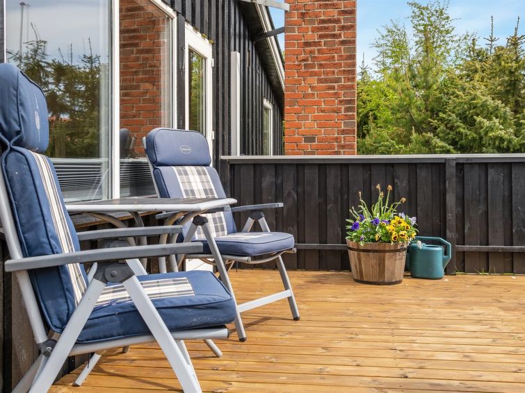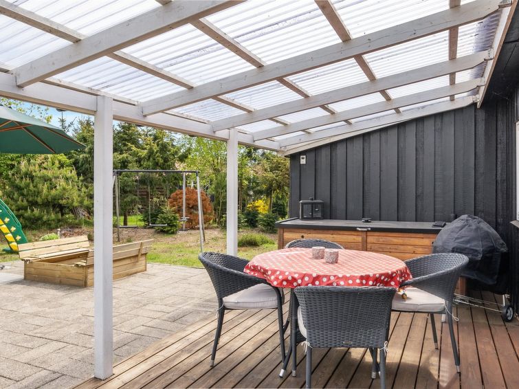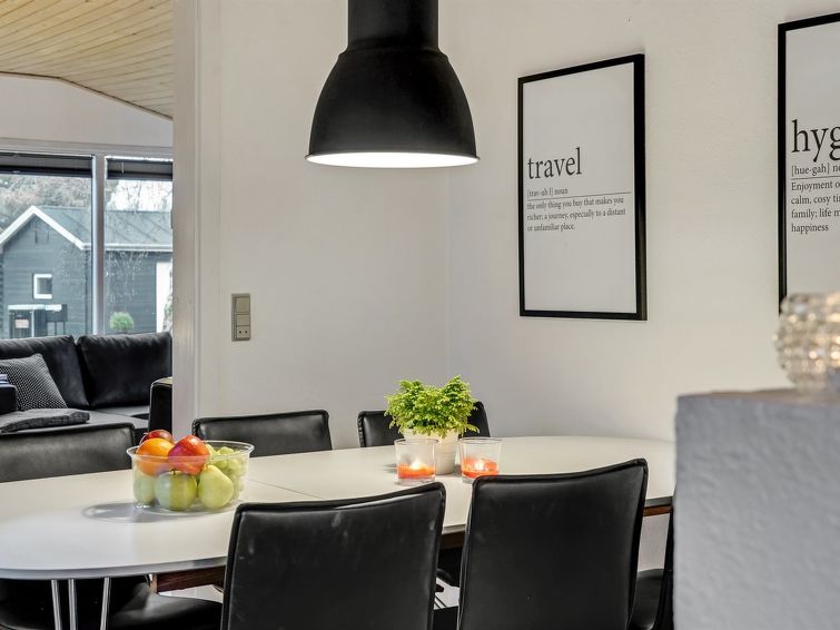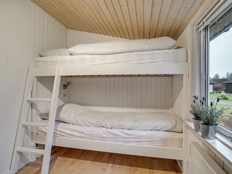 "Leonor" - 300m from the sea in NE Jutland", 3 rom hus 65 m2. Passer for 6 voksne + 1 barn. Stue med, TV. 1 rom med, 1 dobbeltseng. Studio 1 rom med med, 1 x 2 køysenger, 1 dobbeltseng. Kjøkken (stekeovn, oppvaskmaskin, 4 keramiske kokeplater, mikrobølgeovn, frys). Dusj/WC. Terrasse 14 m2, dekt. Utsikt av havet. Fasiliteter: høy barnestol barneseng (ekstra). Internett (trådløs LAN [WLAN]). Vennligst merk: røykfri bolig.