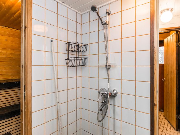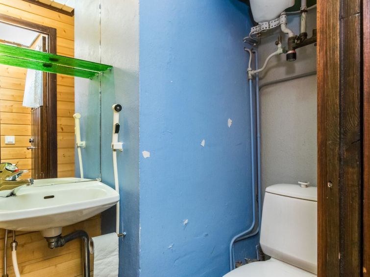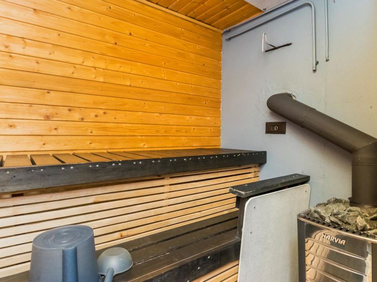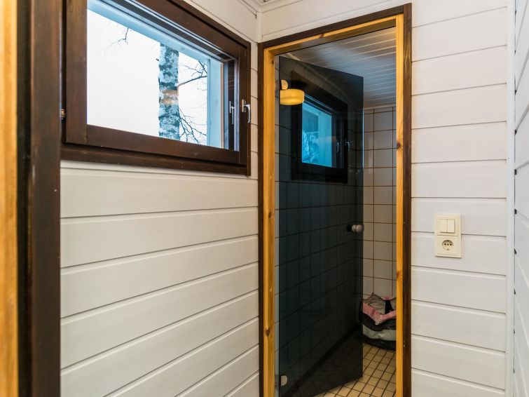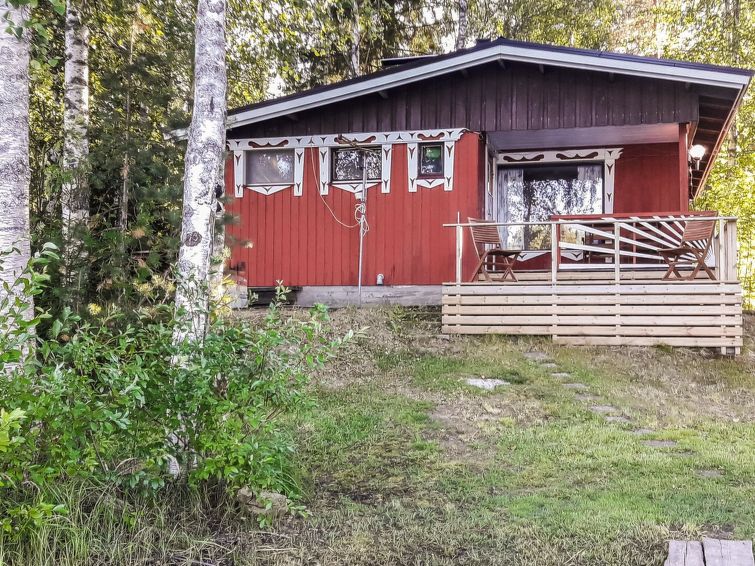 Wooden cabin 1992, renovated 2000, living room/kitchen 1 extra bed, bedroom with 2 beds, sauna, dressing room, foyer, veranda and terrace. Outside power point for the car. One pet allowed, extra charge for other pets 10 €/dog/week. Bed and high chair for a baby if needed.