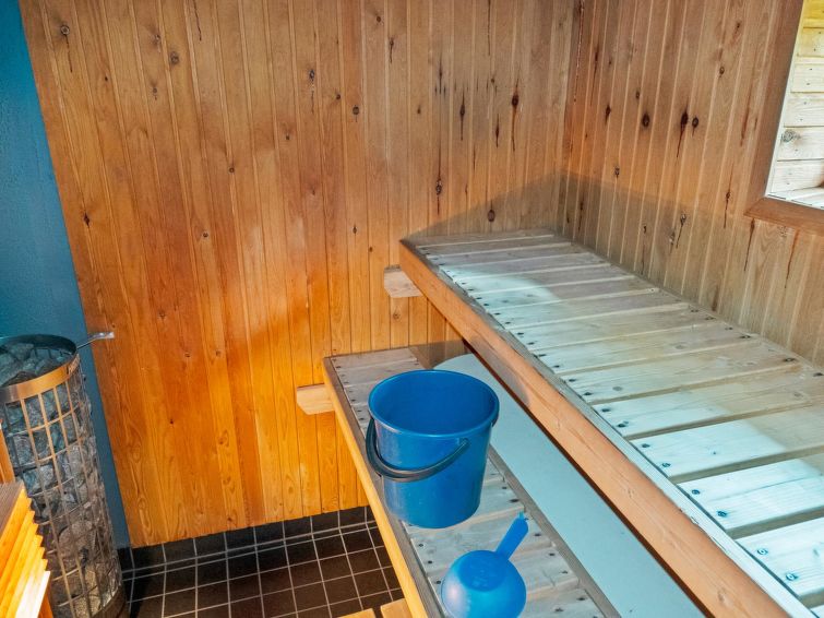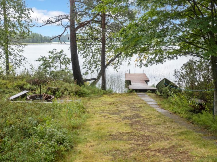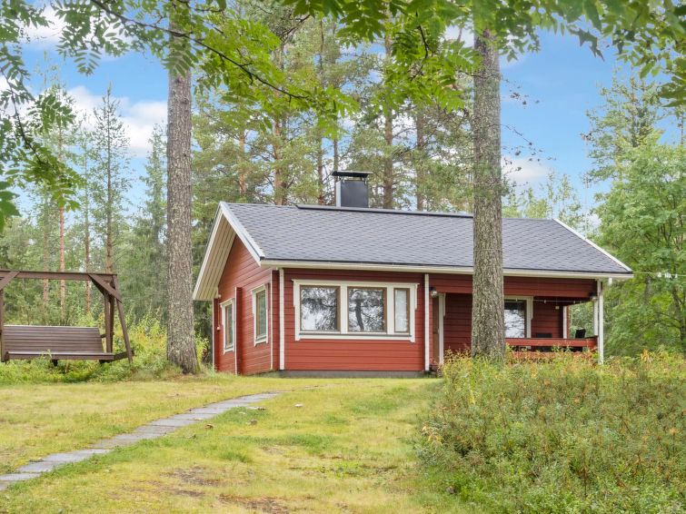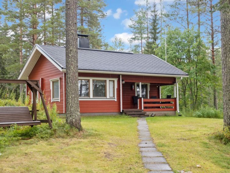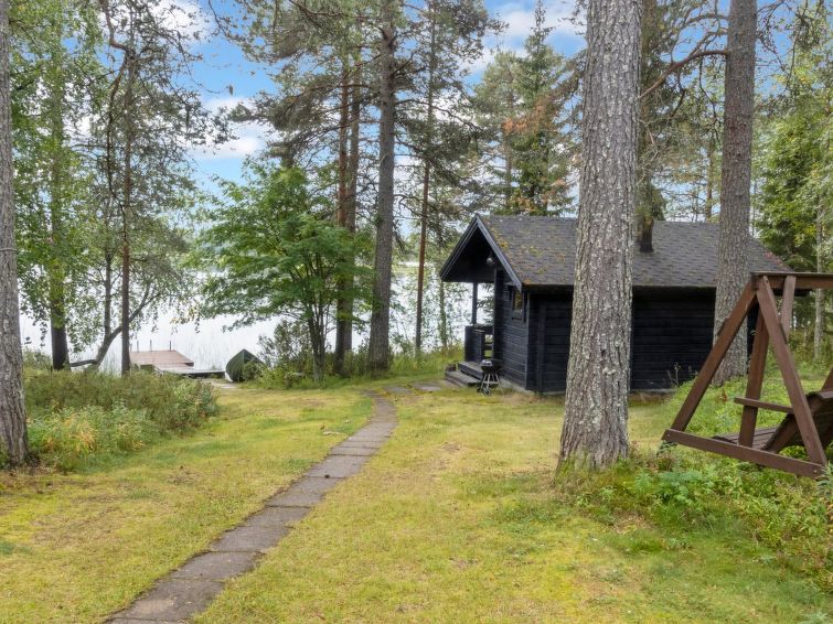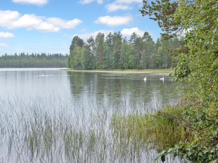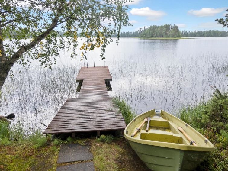 120 km north of Kajaani. Lake Pesiönjärvi 35 m (length 8 km, breadth 5 km), shallow water, firm clay bottom. Own boat. Log cabin 1991, living room/kitchen, bedroom with 2 beds, sleeping loft (15 m² with low room height) with 2 mattresses (steep stairs), washroom, sauna (electric sauna stove), open veranda. Smoke sauna by arrangement. Fish stocks in Lake Pesiönjärvi: perch, roach and pike.