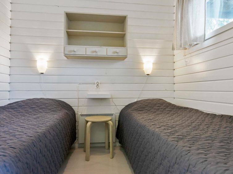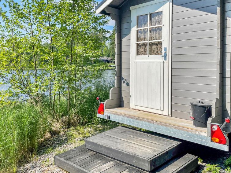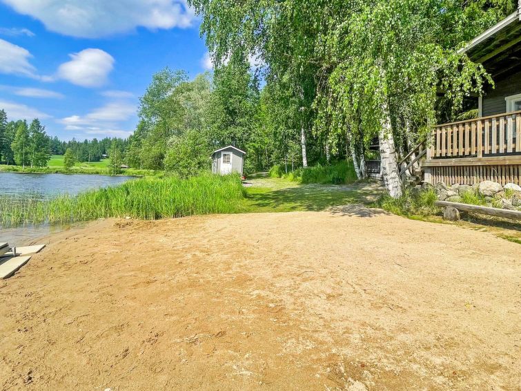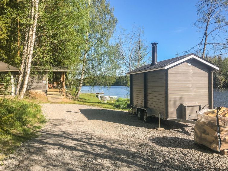 Wooden cabin with boarded outer walls, built in 1979, renovated in 2017. Living room / kitchen, 2 sleeping alcoves with two beds in each, WC with shower, water comes from the municipal water supply, porch with terrace furniture, lakeside sauna with dressing room and sauna room (wood-burning sauna stove), covered cooking area with masonry grill in the yard.