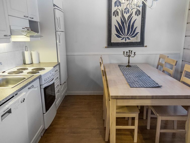 A semi-detached house built 2004, kitchen, living room, bedroom with two beds, bedroom with two beds, washing room, sauna (electric stove), separate toile, terrace. Air source heat pump.