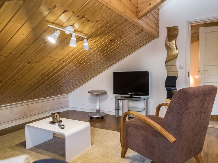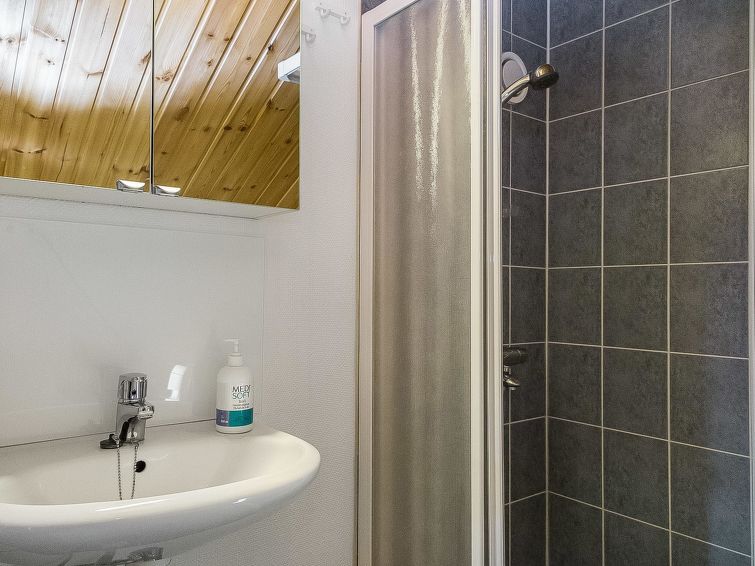 Upstairs bedroom 2 beds, sleeping loft bunk bed with 2 extra beds, washing room with shower and WC. A cosy and neat apartment in the heart of Tahkovuori Ski center. This apartment is best suited for families or couples.