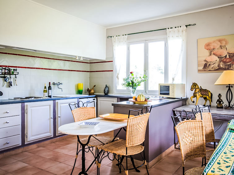 7 rom hus 300 m2 på 2 etasjer. Passer for 8 voksne + 2 barn. Vakkert møbler: stue/spisestue 60 m2 med, åpen peis og kabel-TV (flatskjerms TV). Utgang til terrassen. 1 rom med, 1 dobbeltseng (1 x 160 cm, lengde 200 cm), bad. 1 rom med 2 senger (90 cm lengde 200 cm), dusj. Åpent kjøkken (4 kokeplater, ovn, oppvaskmaskin, mikrobølgeovn, frys). Sep. WC. I underetasje: liten salong med, TV. 1 rom med, 1 dobbeltseng (1 x 160 cm, lengde 200 cm), dusj. 1 rom med 2 senger (90 cm lengde 200 cm). 1 rom med, 1 dobbeltseng (1 x 160 cm, lengde 200 cm), separat WC og dusj. Bad, sep. WC med hjørnebadekar. Fasiliteter: vaskemaskin, tørketrommel, høy barnestol barneseng for barn opp til 2 år. Internett (trådløs LAN [WLAN], gratis). Vennligst merk: røykvarsler.