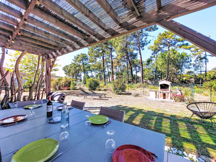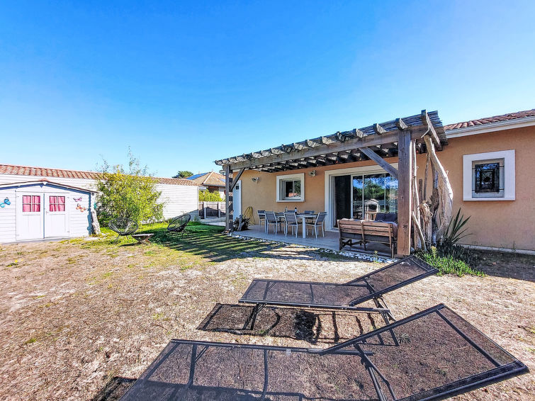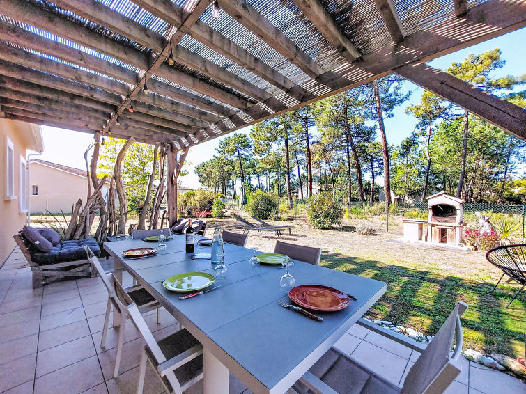 Enmannsbolig "Les Ormes", bygget i 2012. 1.5 km fra sentrum av Montalivet, 21 km fra sentrum av Lesparre, 85 km fra sentrum av Bordeaux, i et boligområde, 1.5 km fra sjøen. Privat: uberørt tomt 800 m2 (inngjerdet) med trær. Pergola, parkering (for 2 biler) ved hbrukt på tomten. Supermarked 1.5 km, sandstrand "Montalivet" 1.5 km.