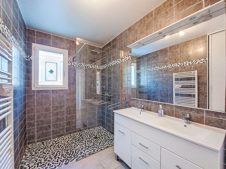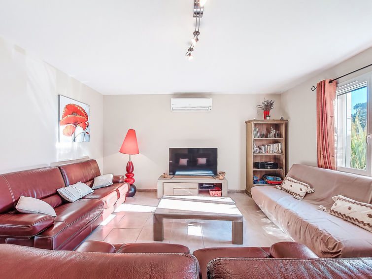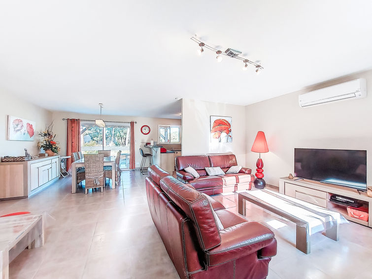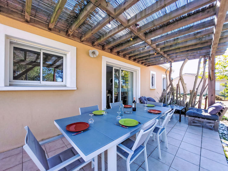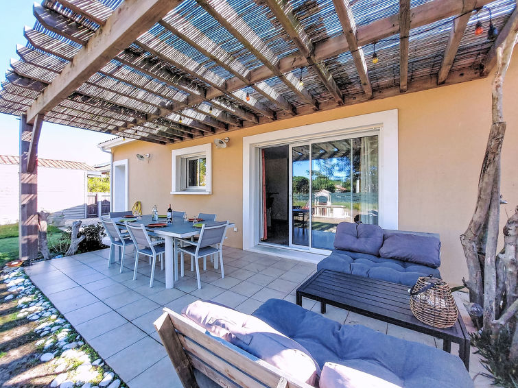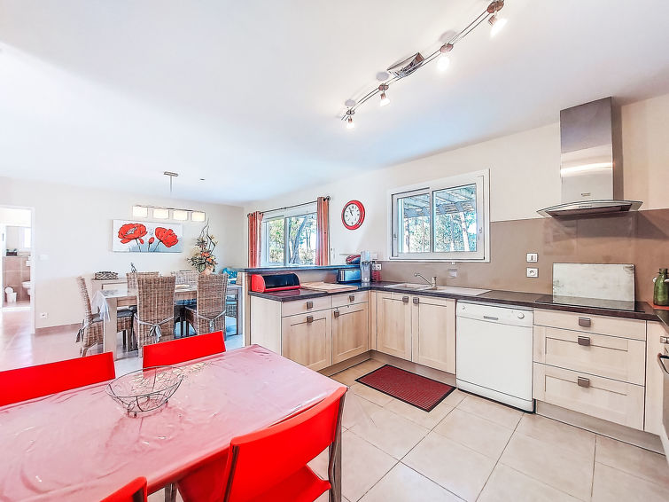 "Les Ormes (MVT225)", 4 rom hus 110 m2. Lys, komfortabelt møbler: stue/spisestue med, spisebord og satelit-TV (flatskjerms TV), radio, CD-spiller og DVD. Utgang til terrassen. 2 rom, hvert rom med, 1 dobbeltseng (140 cm, lengde 190 cm). 1 rom med, 1 x 1 køysenger (90 cm, lengde 190 cm), 1 dobbeltseng (140 cm, lengde 190 cm). Åpent kjøkken (stekeovn, oppvaskmaskin, 3 induksjonskomfyr, brødrister, vannkoker, mikrobølgeovn, frys, elektrisk kaffemaskin, Internet(Senséo), ekstra) med bar. Dusj, sep. WC, dobbel servant. El-oppvarming, airconditioning. Terrasse. Terrassemøbler, grill, liggestoler (6), lager. Fasiliteter: vaskemaskin, tørketrommel, strykejern, høy barnestol barneseng. Internett (trådløs LAN [WLAN], gratis). Vennligst merk: røykfritt hus. Max kjæledyr / hund tillatt 1 kjæledyr / hund tillatt. Røykvarsler.