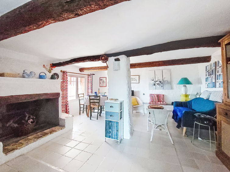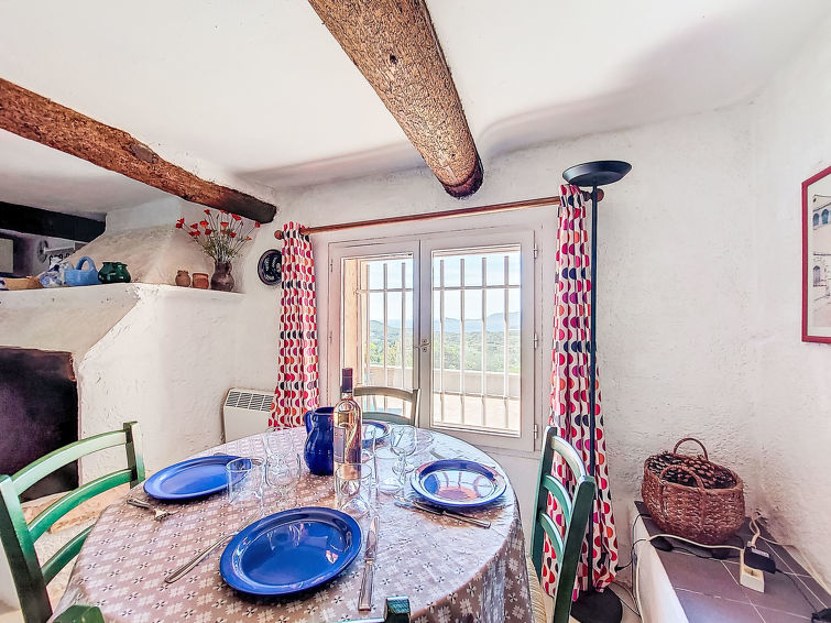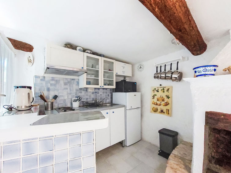 3 rom hus 70 m2 på 2 etasjer. Antikt møbler: stue/spisestue med, TV, radio, CD-spiller og DVD. Lite, åpent kjøkken (2 kokeplater, miniovn, brødrister, vannkoker, mikrobølgeovn, frys, elektrisk kaffemaskin). øverste etasje: (trapp uten gelender), 1 rom med, 1 dobbeltseng (140 cm, lengde 190 cm). 1 rom med, 1 dobbeltseng (140 cm, lengde 190 cm). Dusj/WC. El-oppvarming. Terrasse 30 m2, beliggenhet mot sør-vest. Terrassemøbler, elektrisk grill. Hærlig panoramautsikt av havet og landskapet. Fasiliteter: strykejern. Internett (trådløs LAN [WLAN], ekstra). Vennligst merk: max 1 lite kjæledyr / liten hund tillatt. Bare TV FR. Røykvarsler.