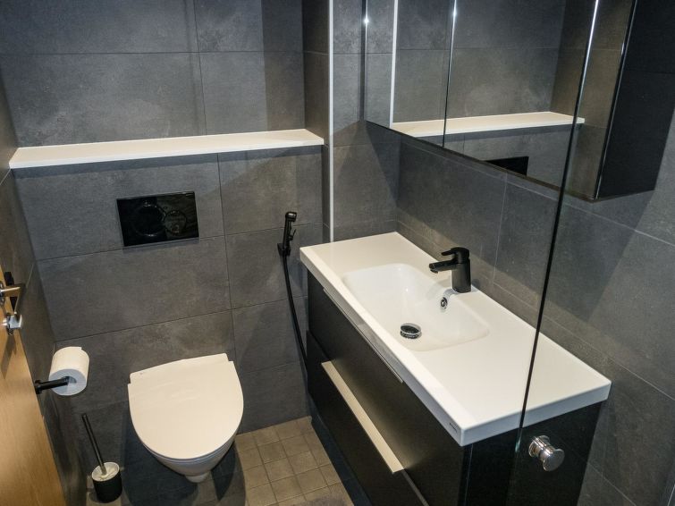 For relaxation and indulgence, there's a sauna and a spacious bathroom where you can unwind after a day of activities. Additionally, the apartment boasts its own balcony with stunning views.