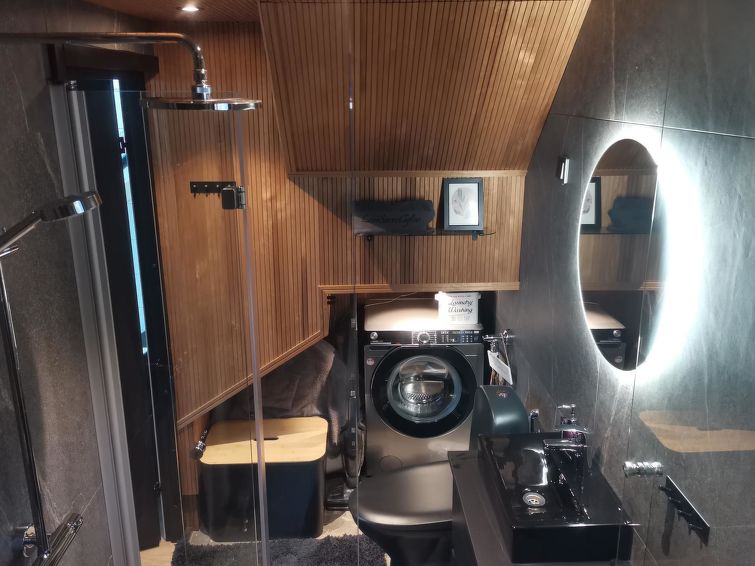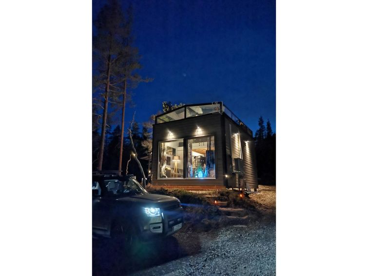 In addition to 160 cm bed wide bed in the loft, the cabin includes one 140 cm wide sofa bed. Floor heating brings additional comfort, and an air source heat pump carries out heating and cooling.