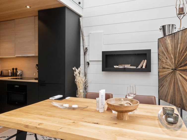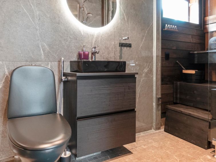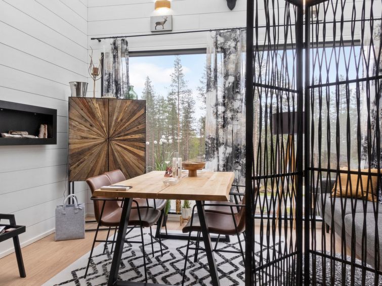 Levi circular ski trail and mountain bike trail nearby (150 m). You can go skiing from the yard, practically. The nearest ski slope is Taalo slope (distance by car 1.5 km), South slope Point 4 km. Levi tourist center 7 km.