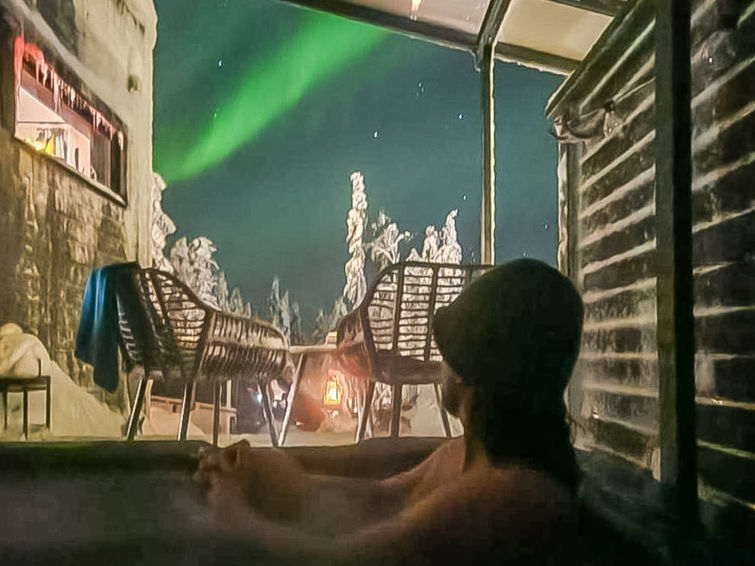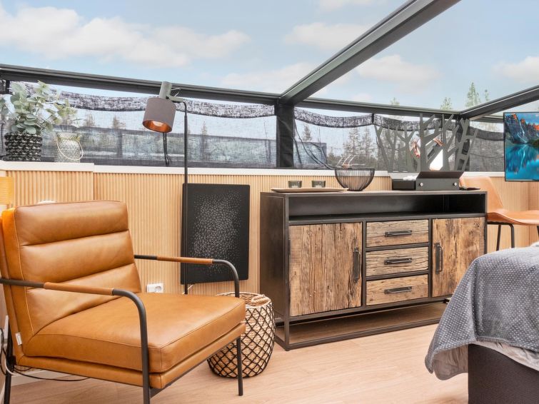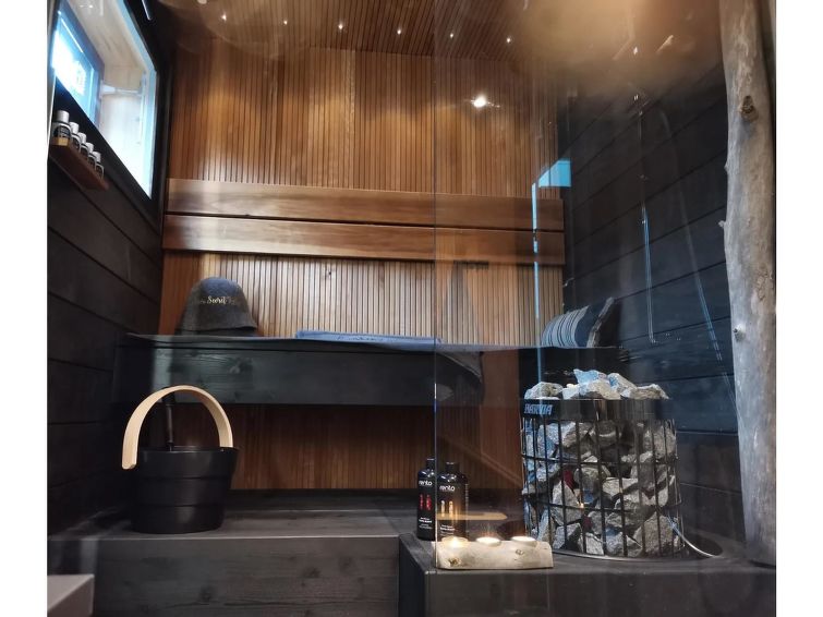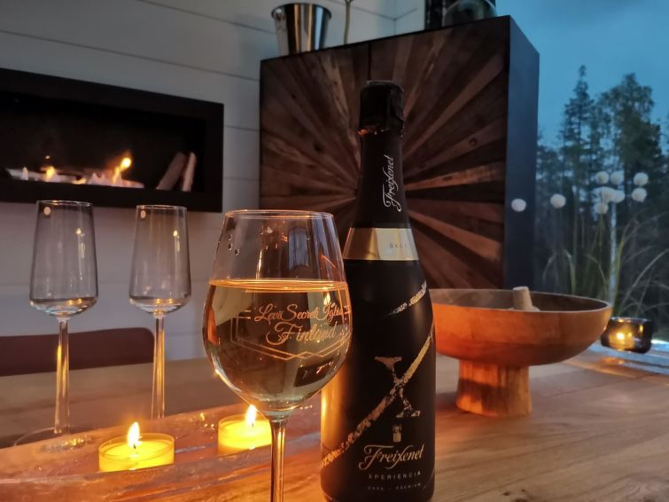 Bio fireplaces in living room and loft and covered terrace with always warm hydro-massage bath brings some luxury to your stay. In addition, iron-made campfire tray and small charcoal grill. The igloo also has an atmospheric sauna.
