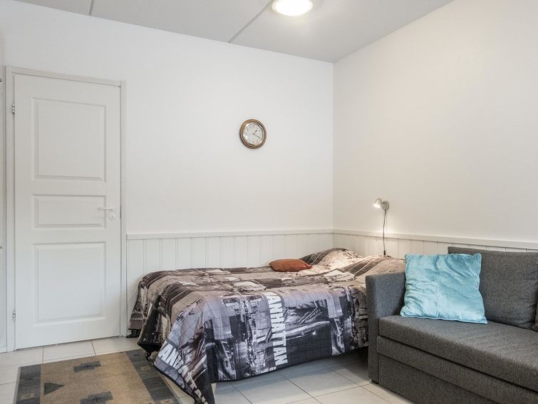 Wood and stone-built holiday apartment, built 2005. Living room/kitchen with two beds and a sofabed. Sauna (electric stove) and bathroom/toilet.