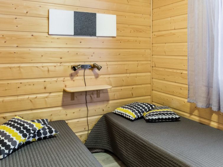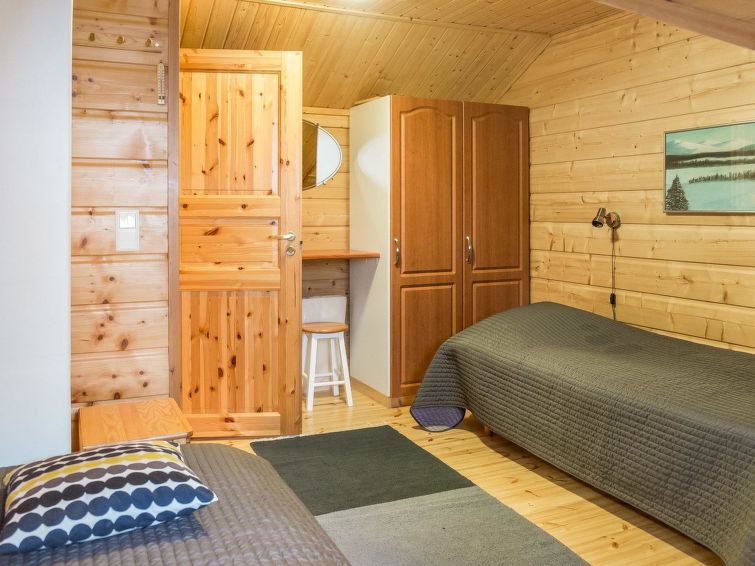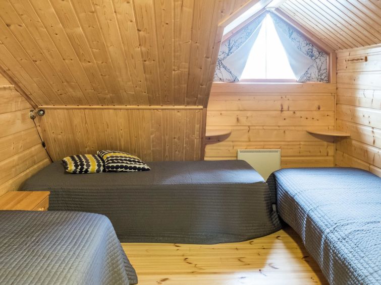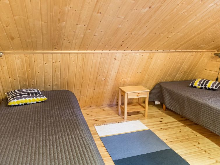 Semi-detached house, built in 2004, on the ground floor kitchen-living room, bedroom with 2 beds, sauna (electric stove), bathroom (2 showers), a separate toilet. Upstairs bedroom with 2 beds, a bedroom with 3 beds, living room with 1 bed, toilet.