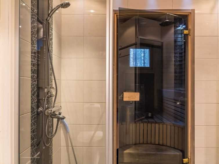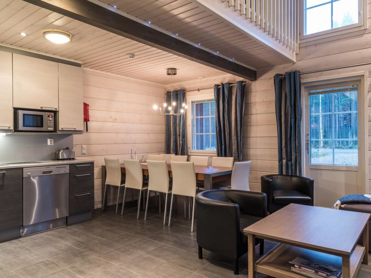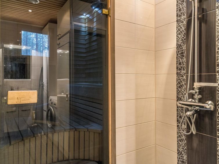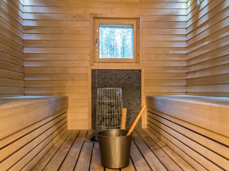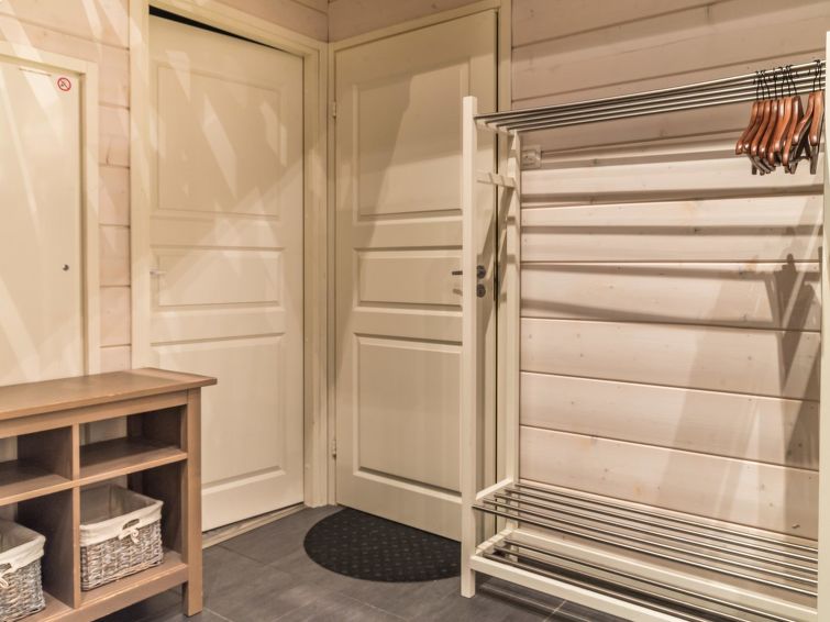 Ski maintenance room available in the yard house, distance 50 m. One half (apartment) of semi-detached house unit in peaceful area, yet close to all Levi services. Nearest ski slope is West Point 300 m, Levi Black competition slope and gondola ski lift 1.3 km, South-Point ski resort 2 km.