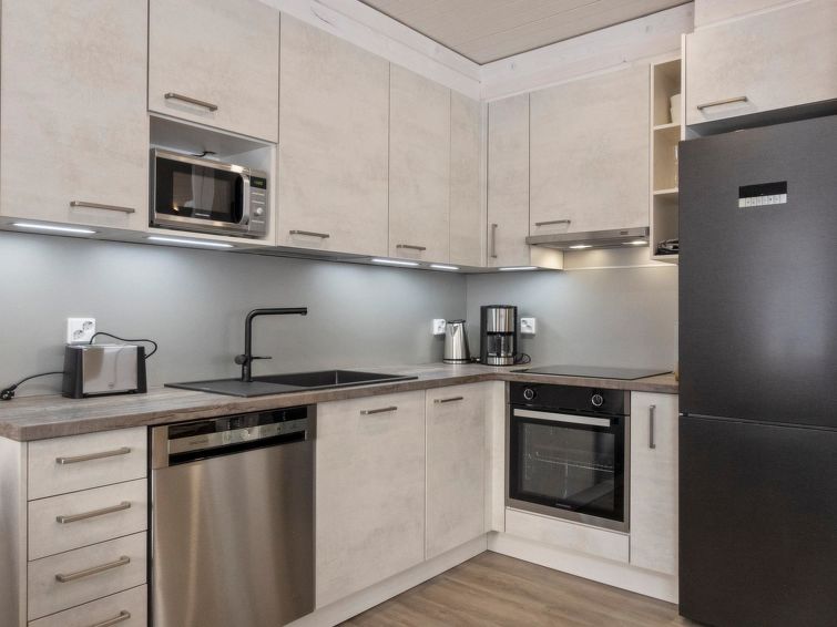 Ahmahovi 2 is a recently completed, modern semi-detached house on the West Slope (Länsirinne). From here you can easily visit the best slopes of Levi. West Point ski lift station only 300 m, Gondola-style ski lift and Kilparinne ski slope (Levi Black) 1.3 km, South Slopes (South Point) 2 km.