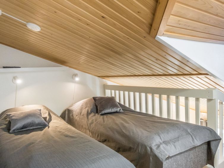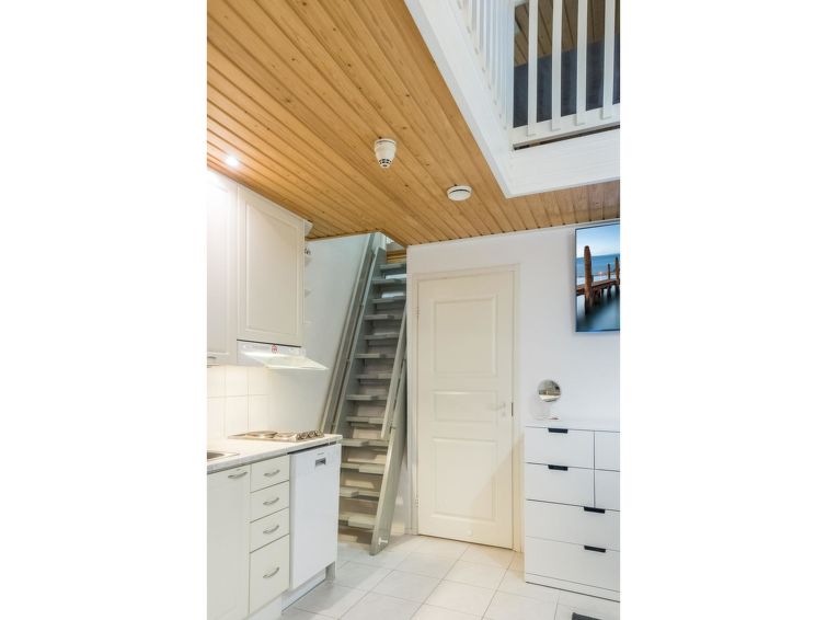 Holiday apartment on the second floor. In the living room/kitchen, there is sofa bed, double bed and separate bed in the loft, sauna and washroom/WC.
