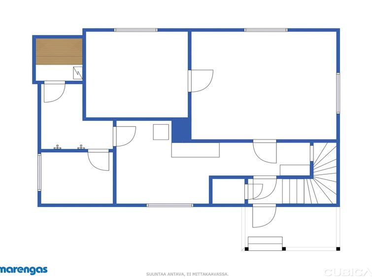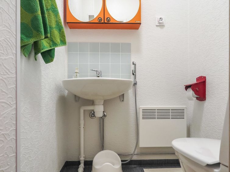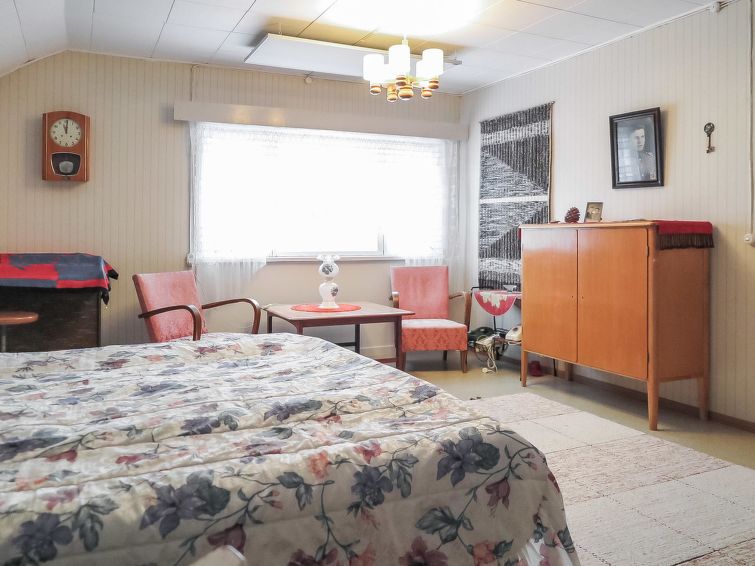 Wooden, traditional two-storey house, built in 1957, renovated later. On the ground floor living room, kitchen, bedroom with 1 bed, sauna, washroom, dressing room and separate toilet.