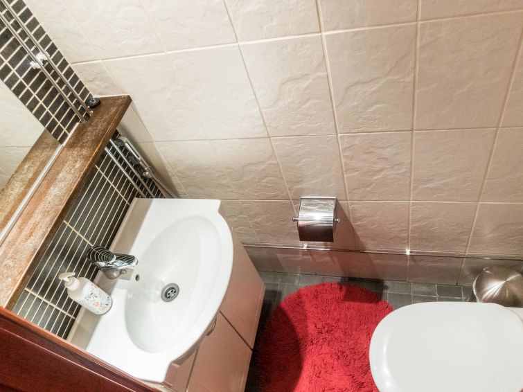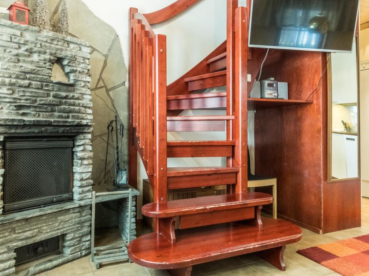 Otava 12 is located on the second floor of an alpine-style house, built in 2006. On the ground floor, living room/kitchen with sofa bed and balcony. On the upper floor, bedroom (bedroom have sliding door), sauna and washroom/WC.