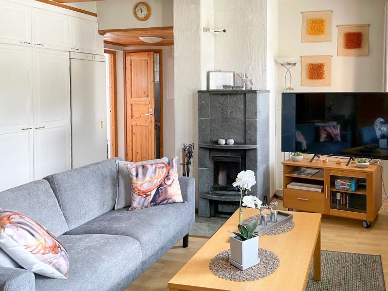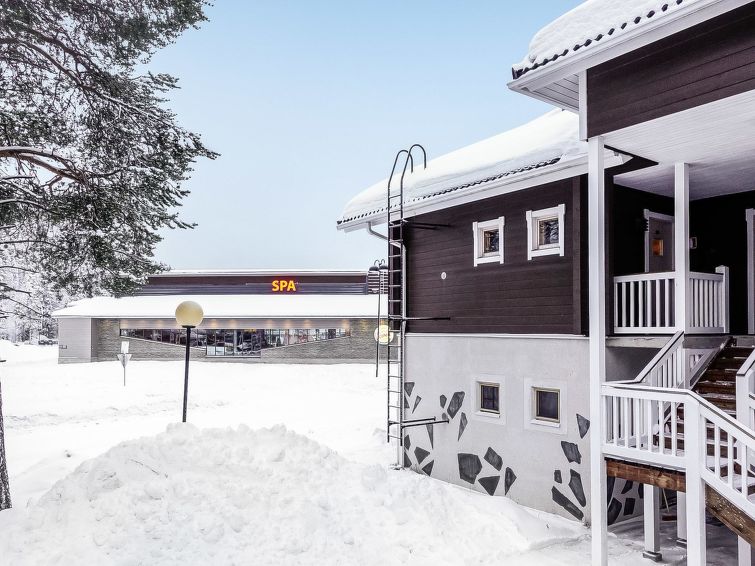 Apartment in Alpine-style house in the middle of Levi tourist center services. The main ski slope’s (Front slope) ski lift station across the street, as well as the spa. Several restaurants, hotels, and shops nearby. Bus stop (Onnibus, airport bus, bus to Rovaniemi) 20 m.
