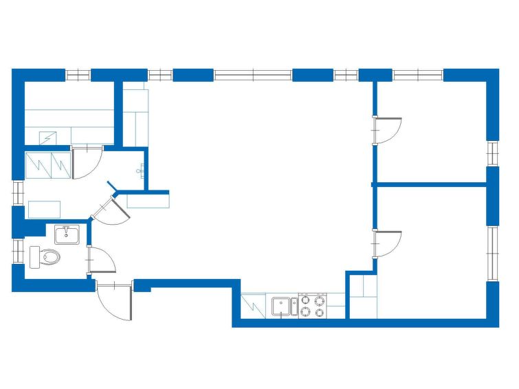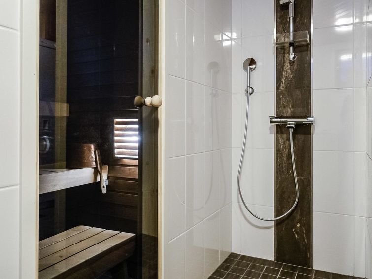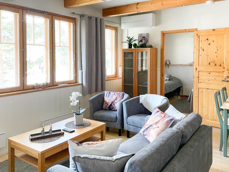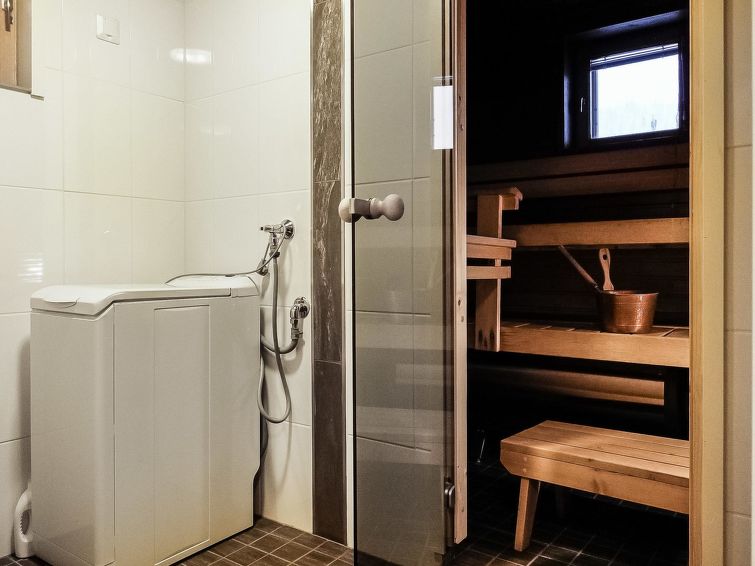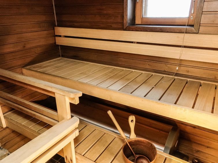 Living room/kitchen, 2 bedrooms each with 2 beds, sauna (electric sauna stove), washroom and separate WC.