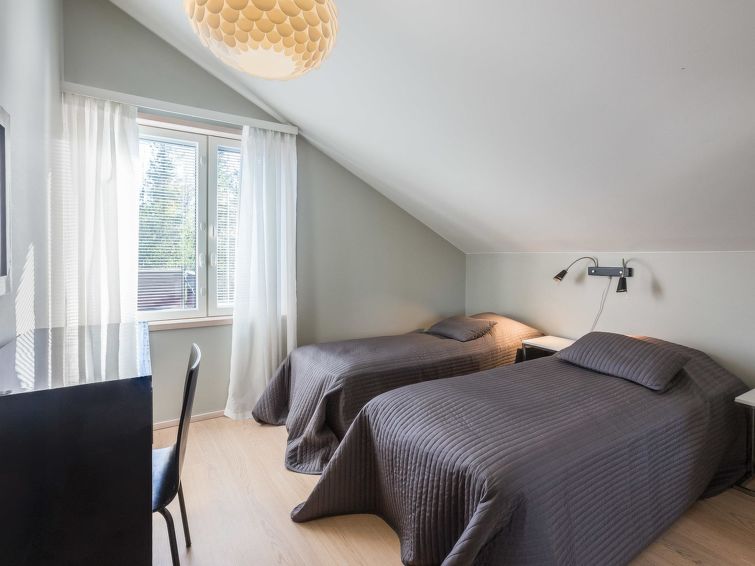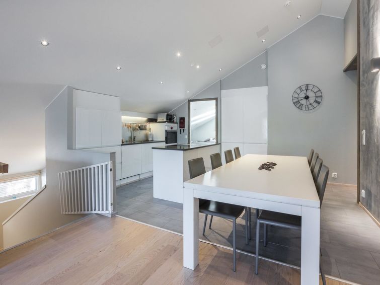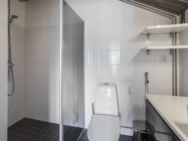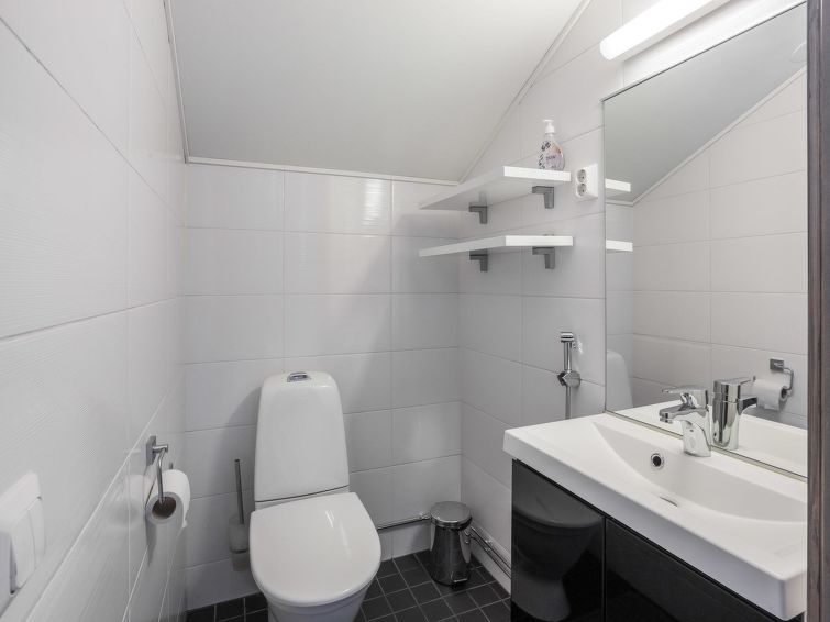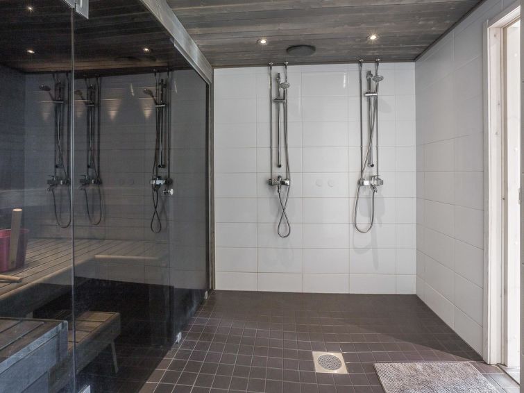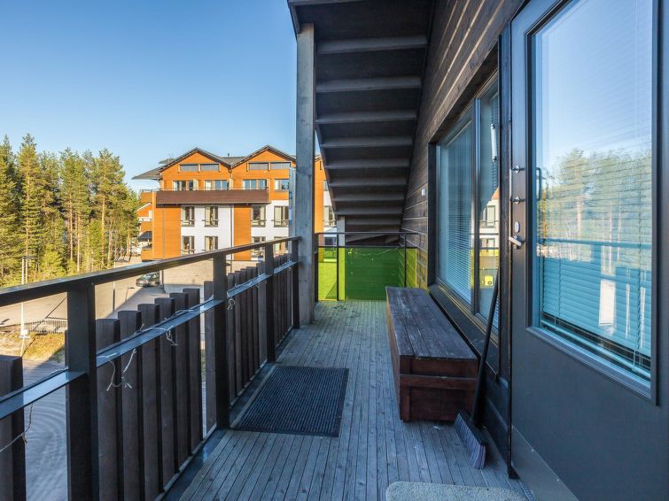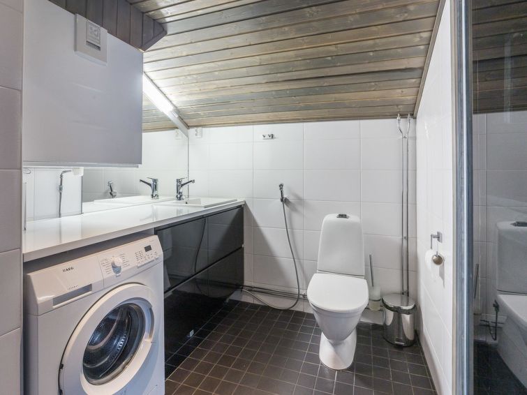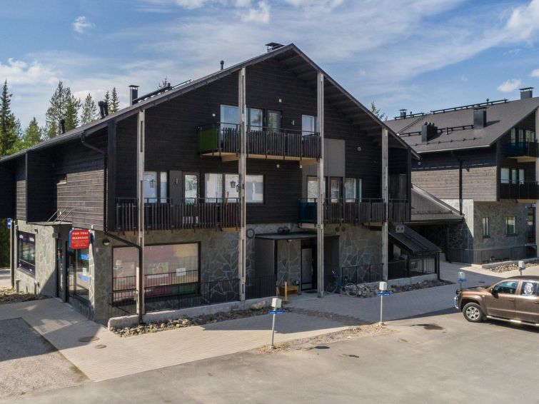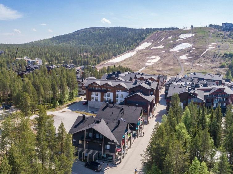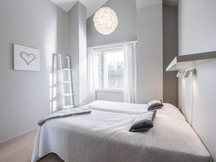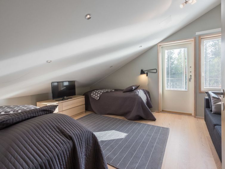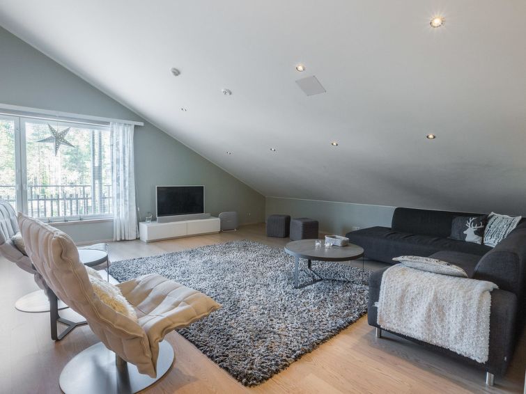 A unique alpine style apartment in the heart of Levi's center. The apartment has 4 bedrooms with two single beds in each bedroom. From one bedroom there is access to balcony. Extra beds ( bedsofa) in bedroom next to kitchen.The kitchen-living room is spacious and there is a dining table for 10 people and a fireplace. A spacious shower room and a sauna for 8 people. 3 toilets, one of which is en-suite. A separate ski storage downstairs of the building. All services, skiing trails and ski slopes are within walking distance. The apartment is located on the top floor of the building. The apartment has a large living area and beautiful details. The apartment is furnished using high quality and stylish materials and is fully equipped.