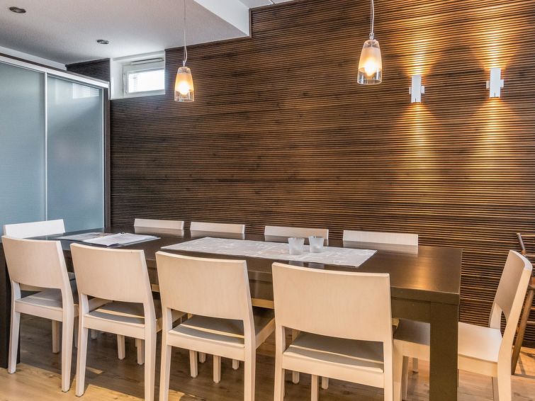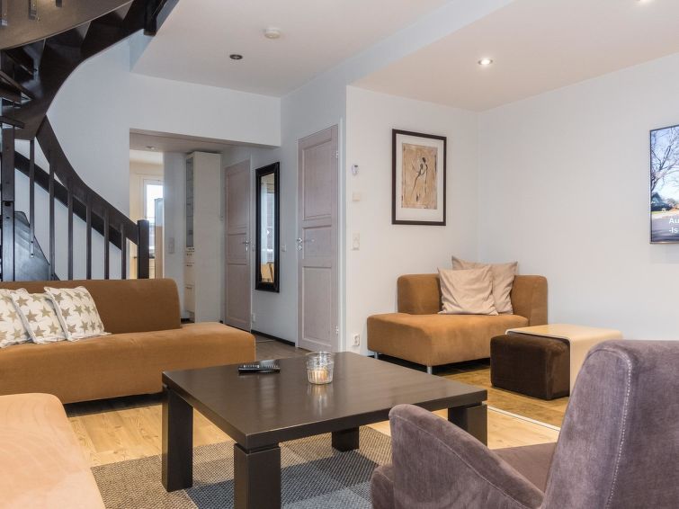 Comfortable and spacious apartment in the heart of Levi. Slopes, trails and other services nearby. Apartment on the second floor in Alpine-style stone house, facilities on two floors. Visual contact to the slopes.